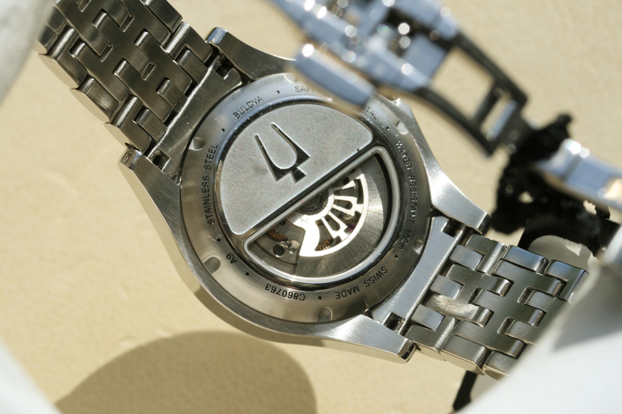 - сквозь открытое окно баланса на циферблате и через заднюю крышку видно работу швейцарского механизма