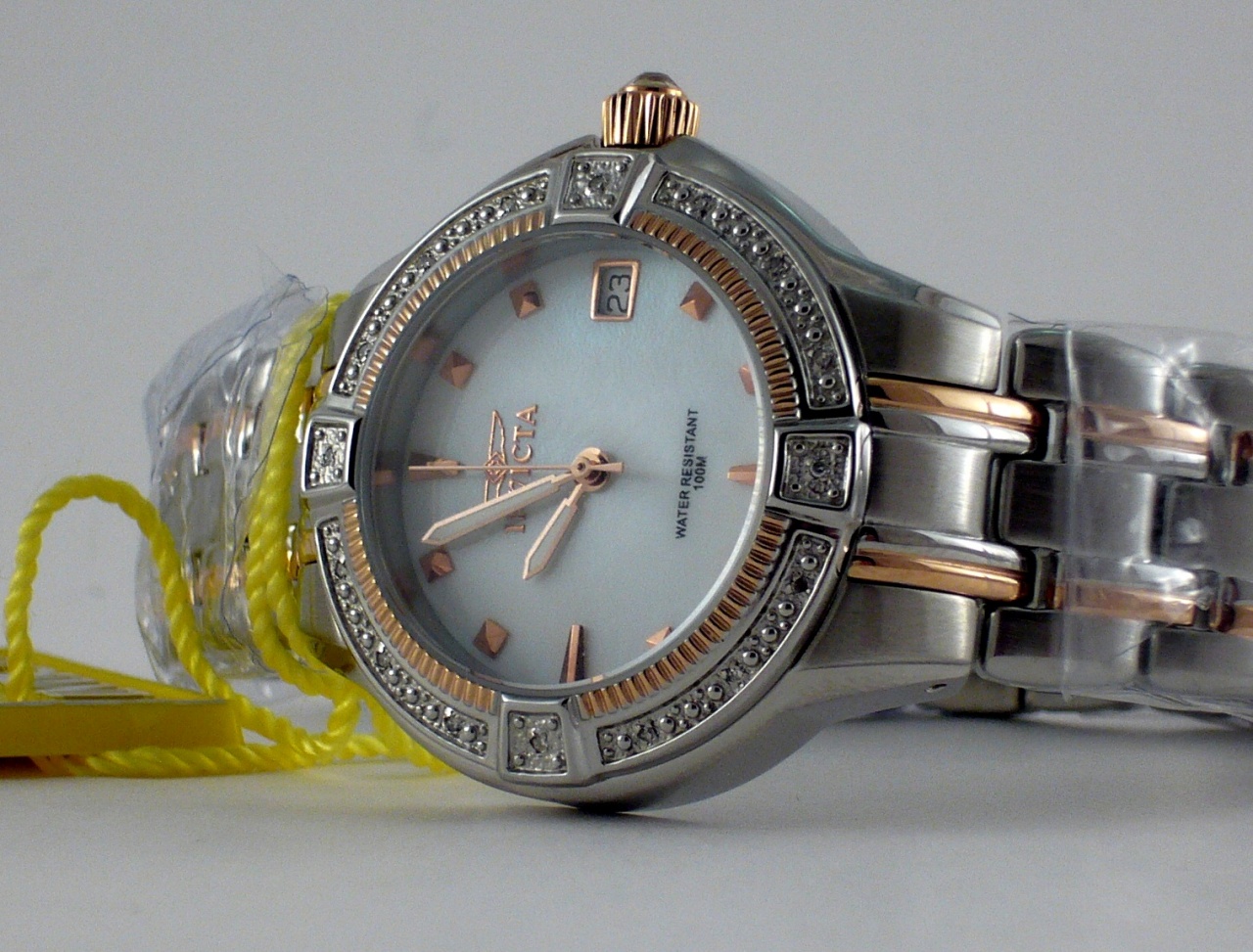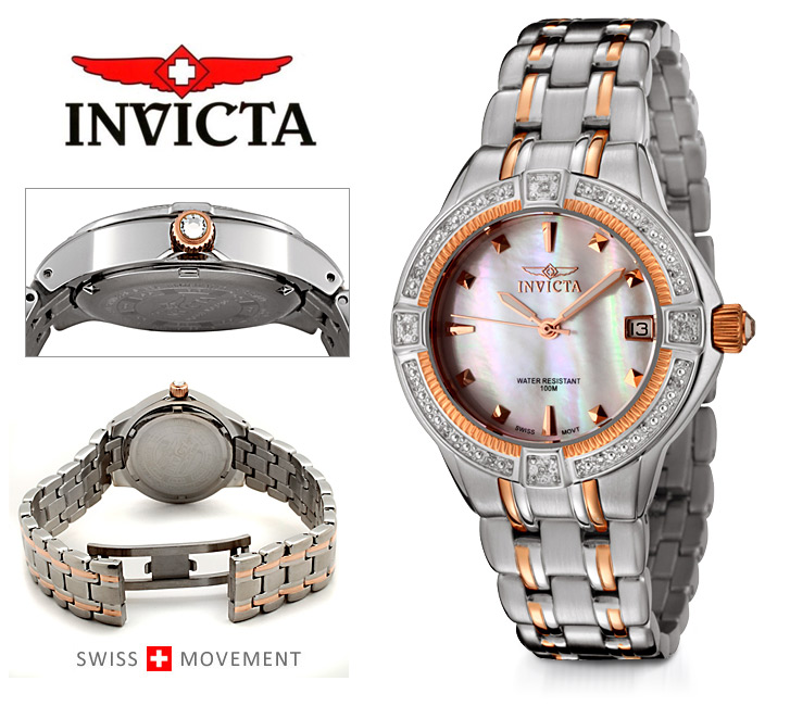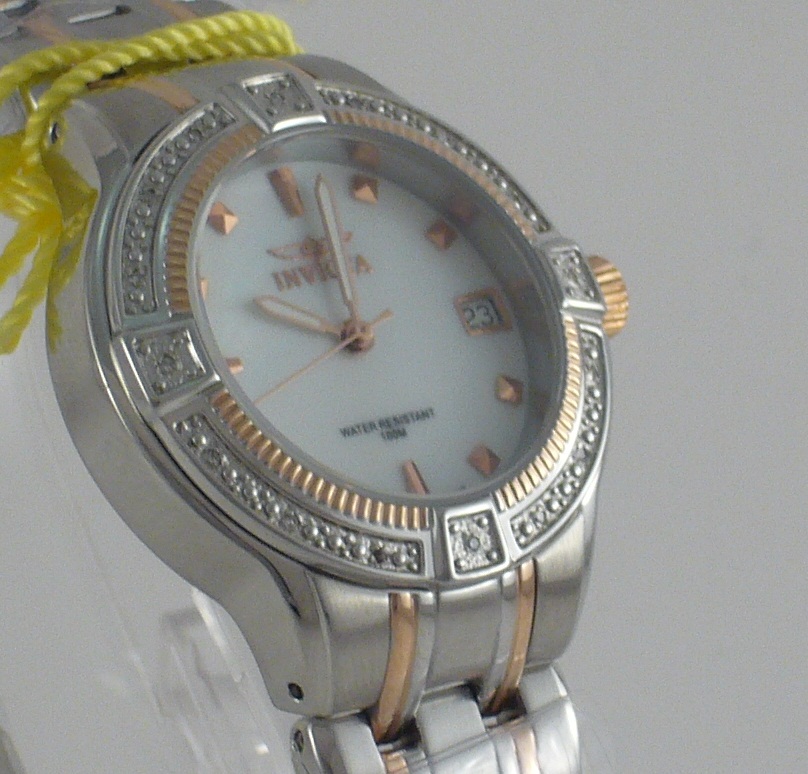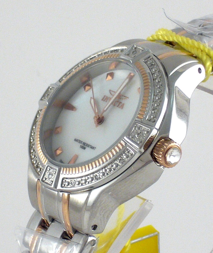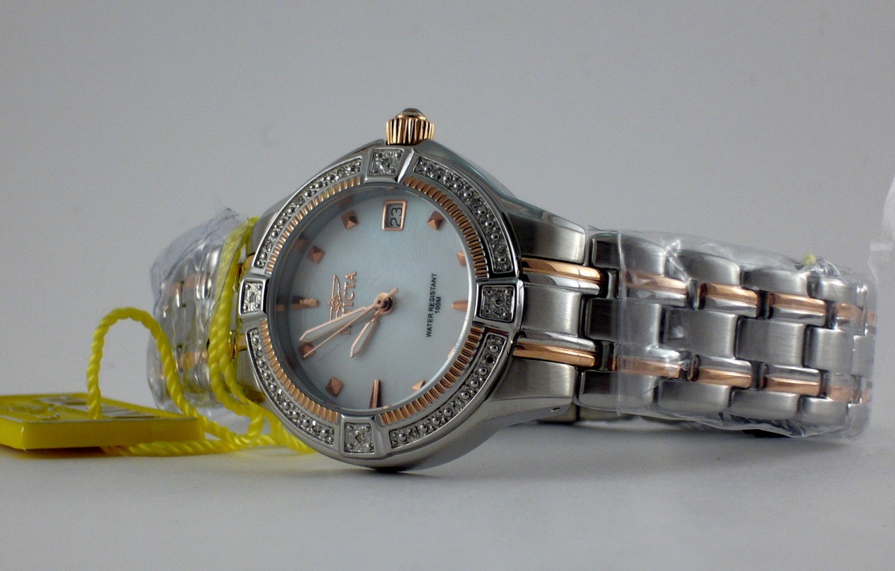Безель - не вращающийся, нержавеющая сталь с частичным покрытием розовым золотом и 16-ю брилиантами