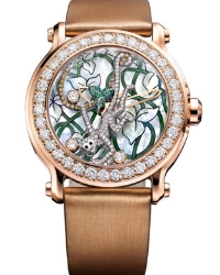 Знаменитая коллекция Golden Diamond от Chopard включает в себя украшения всех наименований, выполненные исключительно из золота - желтого, белого, полированного и матового. Женские золотые часы из этой серии поистине являются эталоном. Выполнены из 18-каратного металла цвета ослепительного солнца, и инкрустированные белыми бриллиантами, напоминающими лучи, исходящие от благородного слитка. Ничего лишнего - только две черные стрелки, логотип Chopard и золото, золото и еще раз золото.