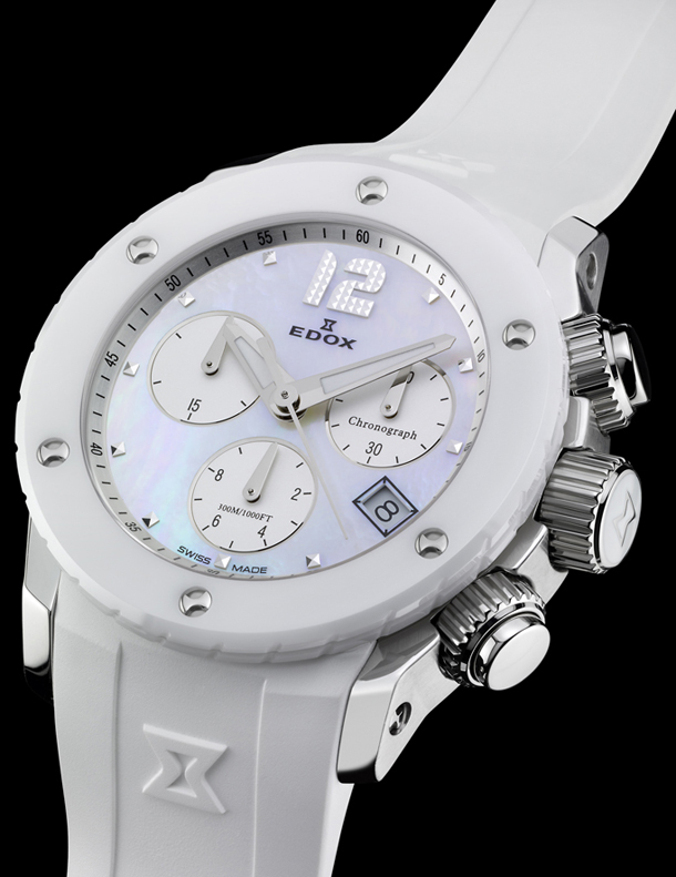 Коллекция Chronolady включает в себя разные модели: корпус с черным покрытием PVD с безелем из белых бриллиантов ограниченной серии или розовая керамика с каучуковыми деталями.