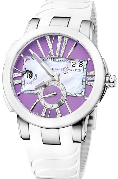 Очередная новинка от швейцарских часовых мастеров – эксклюзивные женские часы Dual Time Executive GMT Lady производства Ulysse Nardin. Роскошные часы представлены в трех версиях: с сиреневым циферблатом, перламутровом и перламутровом с применением желтого золота.
