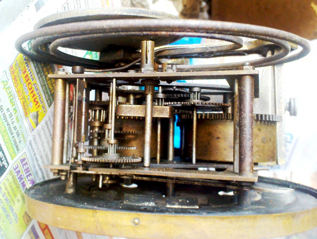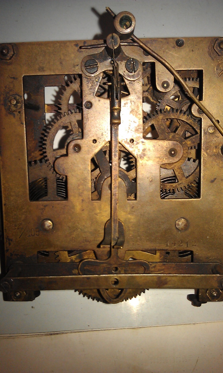 Я приобрел прошлой осенью то, что осталось от часов, на задней стенке платы цифры: в левом нижнем углу 42/105, по центру DRP № 55006 и справа 14212.Кузов в жутком состоянии, механизм рабочий. Циферблат и маятник типичные для этих часов. Фото во вложении
