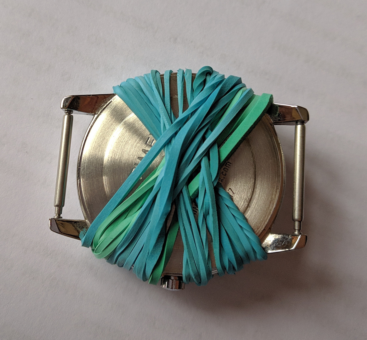 С маленькими женскими часами (Daniel Wellington, примерно 28мм) не прокатило. Видимо, из-за малого диаметра рёбра жесткости хорошо работают - и крышка не подгибает края. Намучился, сколько слоев не наматывал - все без толку. Уже даже замотал плотно весь корпус, приготовил тонкие штапики, достал клещи, но потом подумал и спрятал. Сижу вот, пишу сообщение.