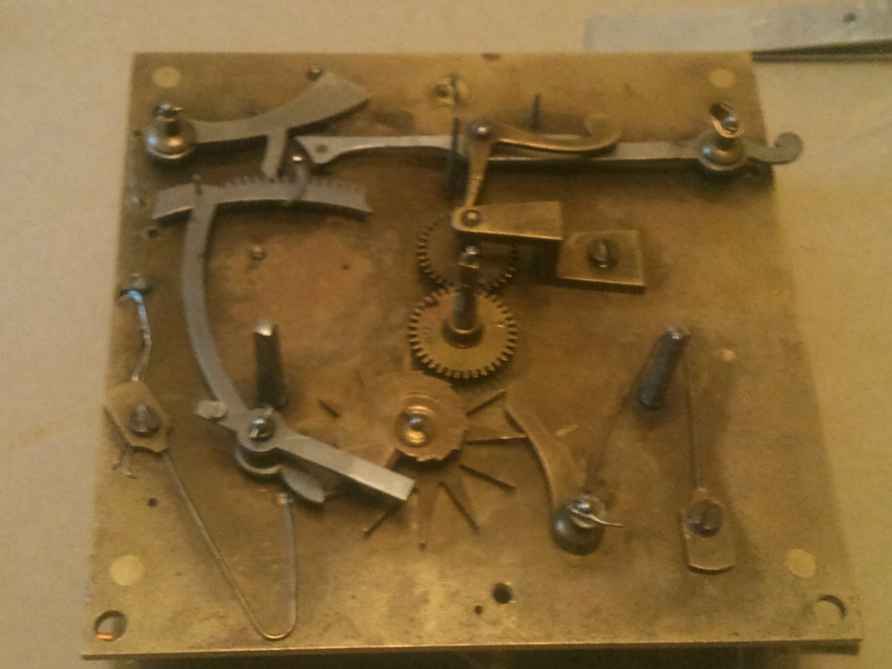 В начале 2000-х один старик, зная мой любительский интерес к ремонту часов, подарил мне полумертвый жильный механизм с циферблатом и стрелками. Маятник был сломан, от штока была только верхняя часть. Секундная стрелка, вилка и молоточек отсутствовали, гирь и тросиков не было. Мне стало интересно восстановить утраченные детали, и запустить механизм. Денег на новые детали не было, но была куча подручных материалов.