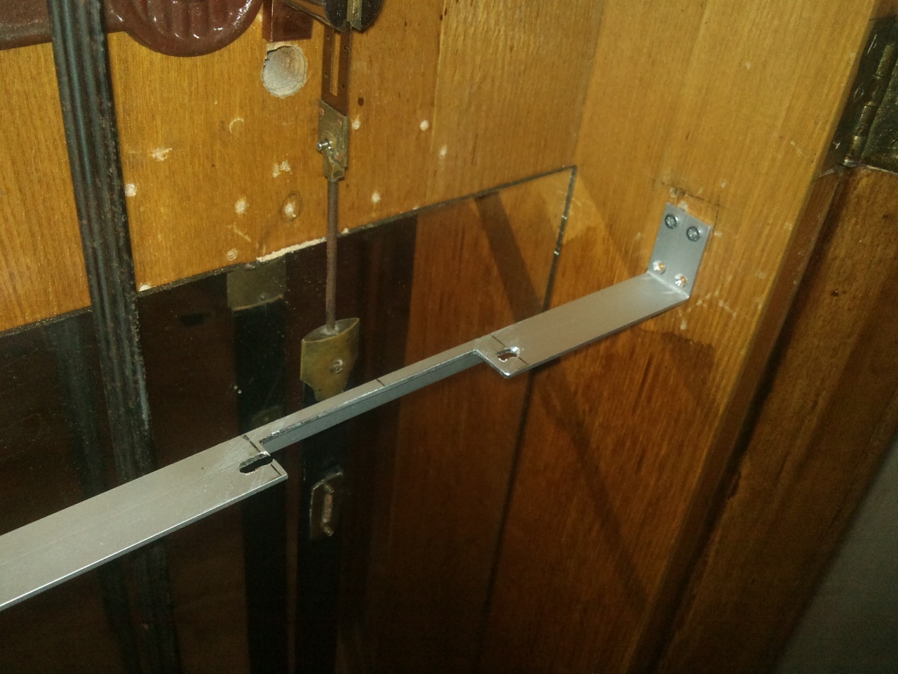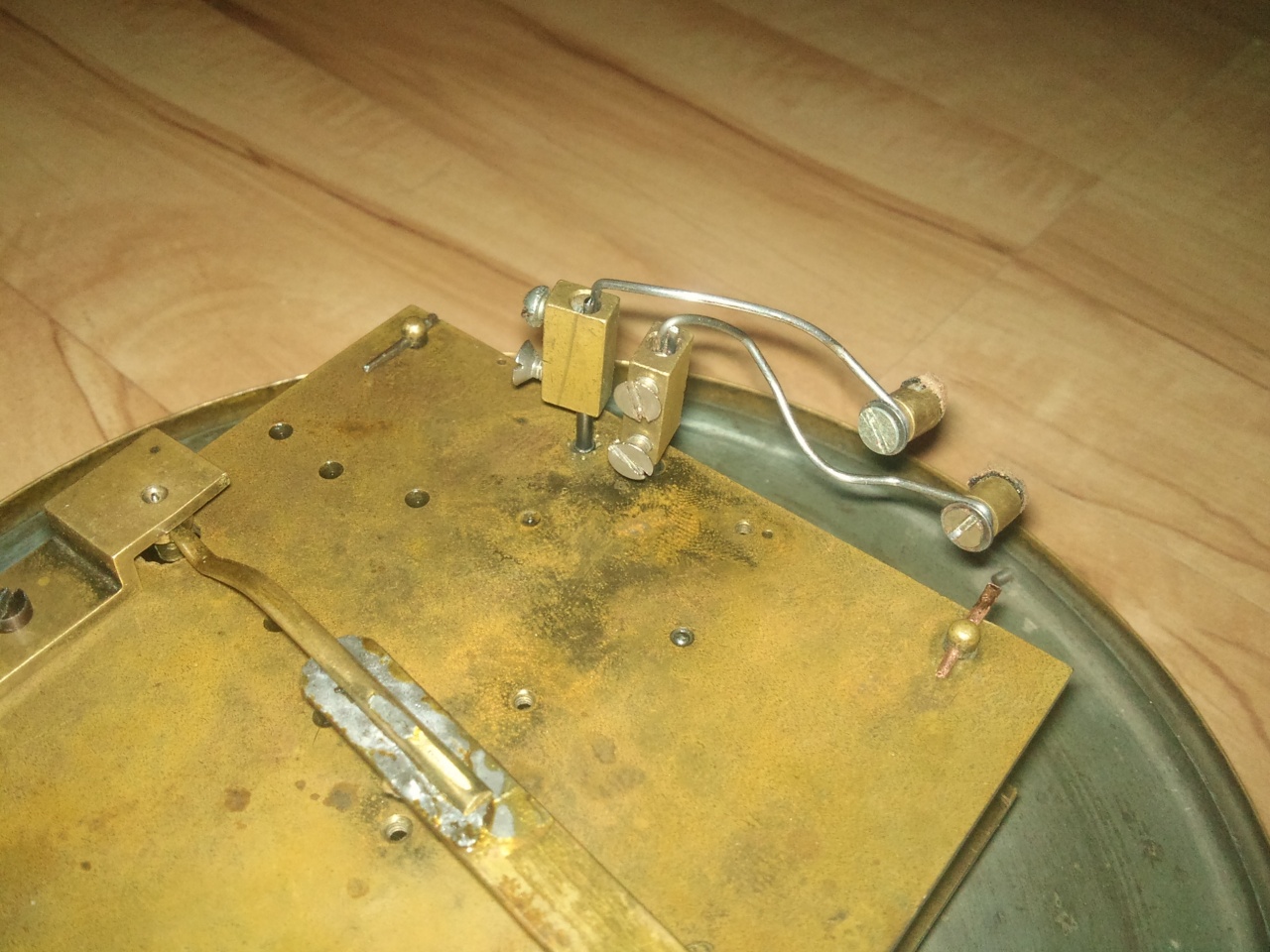 Поводок маятника у вилки был сломан. Уже не помню по каким причинам, но мне показалось логичным напаять к нему довольно длинную латунную полоску, и сделать отвод к маятнику. Как ни странно, механизм кое-как, но заработал.