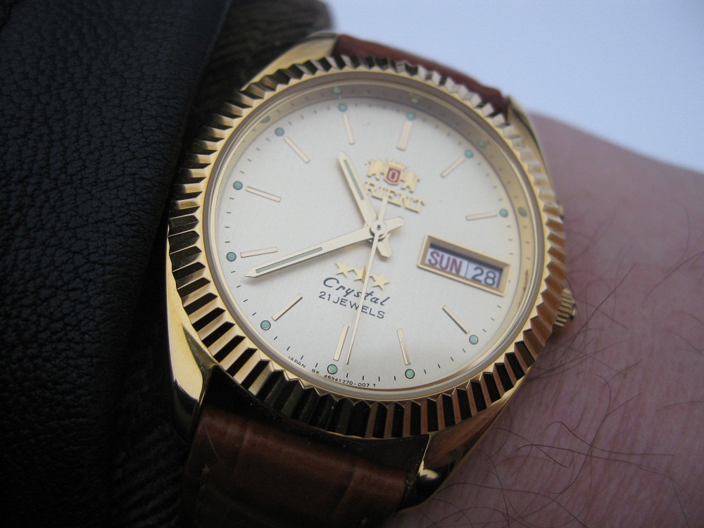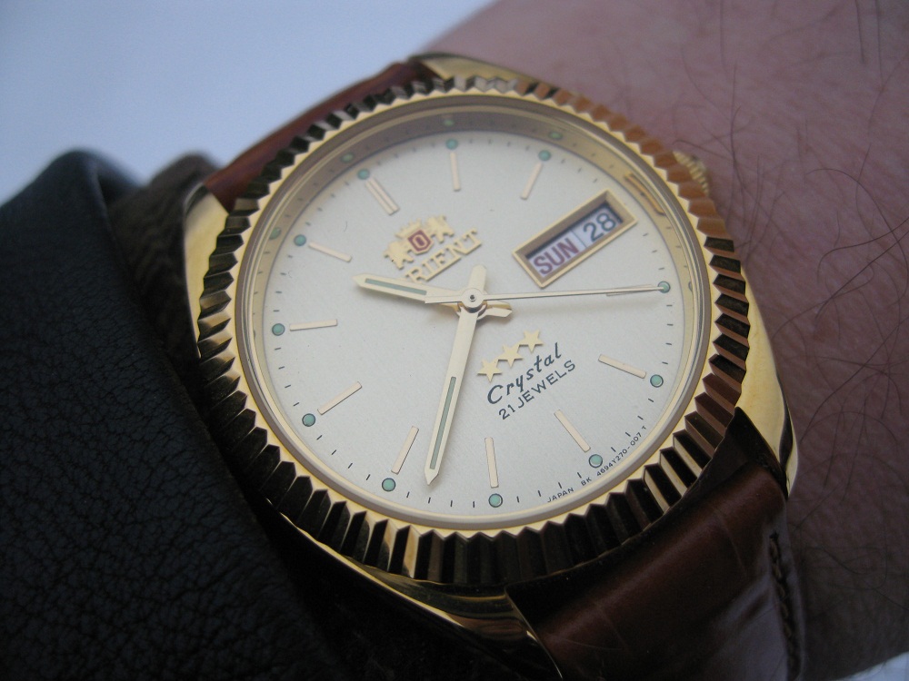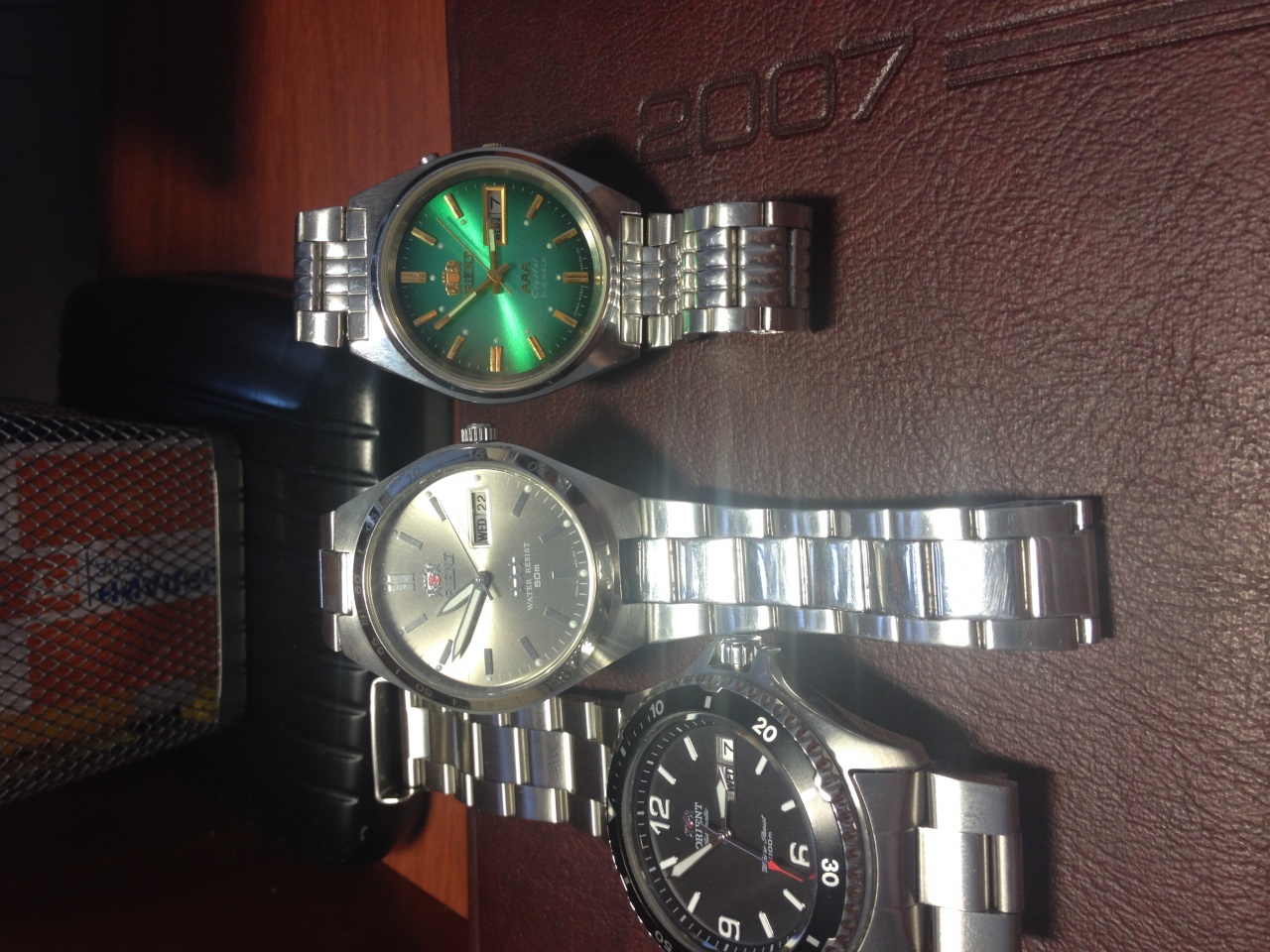 Время шло, мысли о часах зарубежных не покидали мою голову. А тут масла в огонь подлил один случай, приключившийся со мной. Может кто-то будет смеяться, я допускаю такую мысль, но первый раз столицу нашей страны я посетил только в 9 классе. (живу я в Беларуси) Отец моего школьного друга брал нас с собой в поездки в столицу, он решал свои дела, а мы немного расслаблялись, смотря на столичные прелести) В ЦУМе первый раз я живем увидел Orient. Это были известные всем три звездочки, а может ААА, такие обозначения тоже встречались. Я ими заболел. Каждый раз посещая столицу, мы с другом ходили смотреть на часы. Но стоили они дорого, для меня так точно дорого.Не скажу, что я в школьные годы не подрабатывал, наоборот, лето проходило с пользой, особенно в старших классах, но денег на часы все равно не хватало. К окончанию школы про Orient я не забыл, забрав эти воспоминания в студенческую жизнь. И вот тут летом я уже смог себе позволить осуществить мечту. Это было лето, середина июля, жара. На Немиге (не помню, как тогда назывался ТД) я приобрел свой первый Orient. Какая же это была радость, безграничная радость от осуществления давней мечты.