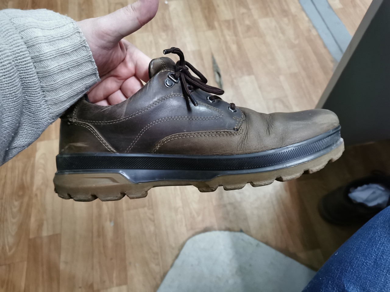 В итоге кожа верха отличного качества и она в идеальном состоянии, подклад внутри без каких-либо повреждений, подошва мягкая и цепкая, без какого-либо заметного износа -- но всё это не имеет значения, т.к. ботинки в утиль.