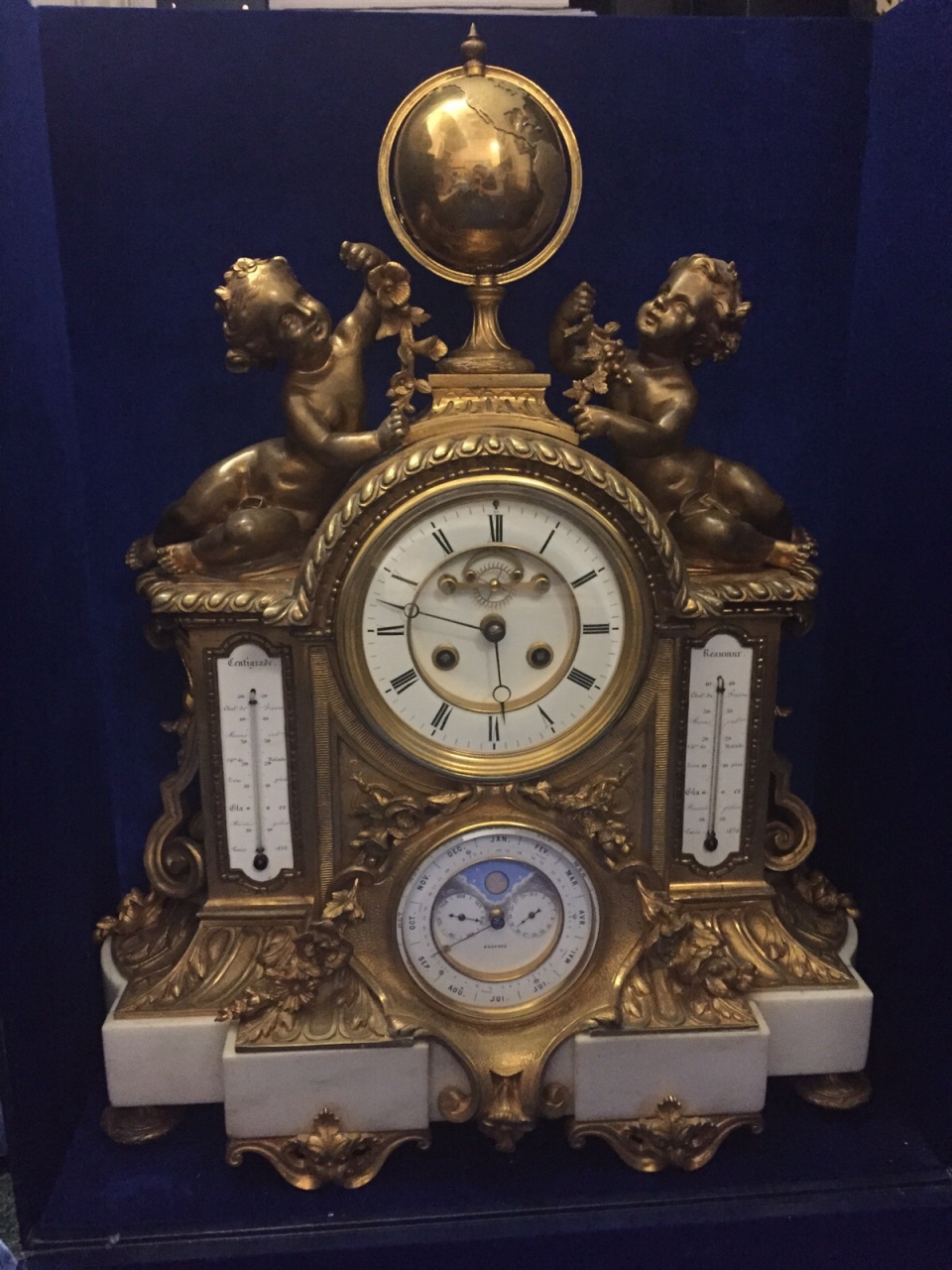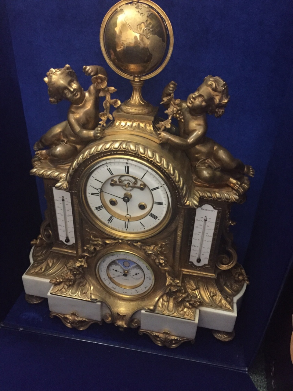Отлиные часы с открытым анкером!!!,годовым,и лунным календарями!!!,еще есть шкала наверное каких-то солнцестояний,но это более сведующие пояснят,два градусника там думаю один Цельсий ,другой Фаренгейт,а может еще что???Земля крутится???,если крутится,то это вращение по всей видимости тоже имеет смысл,какой сказать не могу.Напишите что бьют часы,отличный,и очень дорогой подарок,имеет не малую коллекционную ценность,ну если оригинал конечно,но уверен почти на 100% что оригинал,по цене трудно сказать в наше время все перепуталось,да ,и не силен я в подобных,поэтому послушаем более понимающих в вопросе......