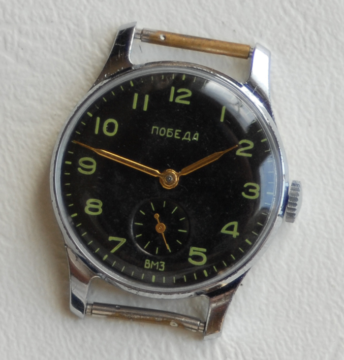 Победа от ЭЧЛ 3-55. До сих пор не могу понять, какие заводные головки ставились на анодированные корпуса.