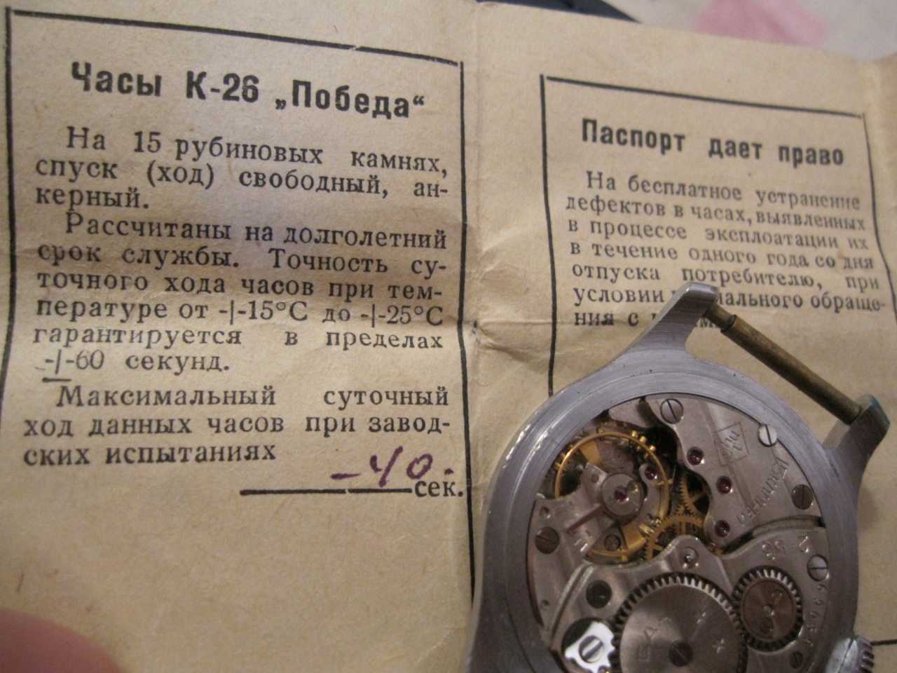 Касаемо моих экземпляров, то одни часы пришли из Питера с молотка (были в куче нерабочих часов, как современных типа Командирских, так и старых советских), другие же купил здесь при распродаже остатков часовой мастерской. В обоих случаях я не знал, что скрывается внутри корпуса, обнаружил только дома.