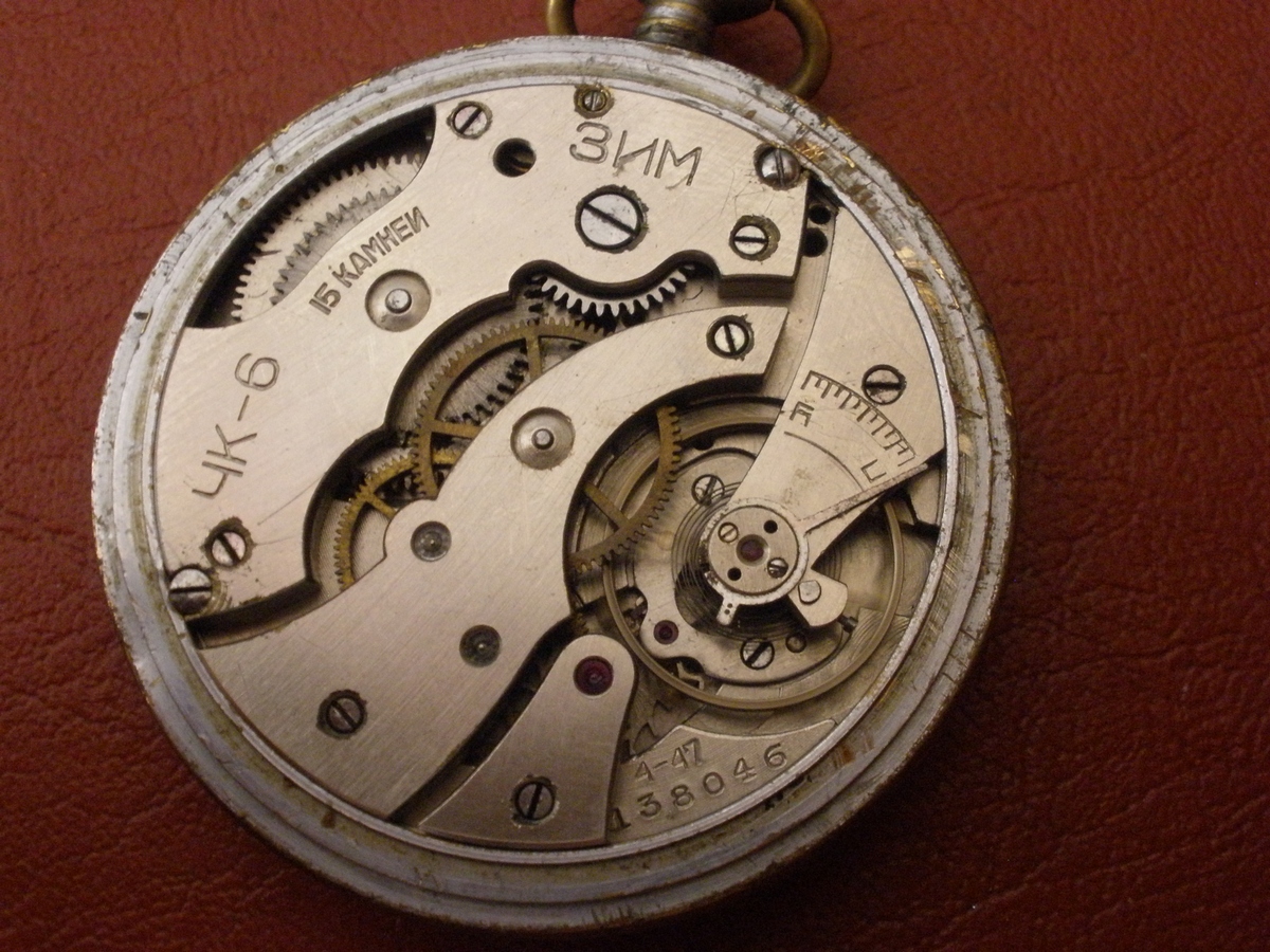 Принято считать, что позолоченные механизмы достались от LIP, и что они довоенные. Однако. ЛИПов видел немного, в основном механизм не позолочен. Кроме того, сохран позолоченных механизмов значительно лучше, чем у простых, возможно золотить стали после 50-го года, тогда же убрали надписи, так как нигде не попадался ЗИМ ЧК6 с датой позднее 50-го года. Возможно, их прекратили выпускать уже в 50-е а не в 60-е, с переходом на 26-й калибр, как принято считать. Хотя, конечно, ХЗ. По стеклам. Минеральные попадались дважды (всего), в том числе - один ЗИМ с таким у меня. Стекло сидит нормально, однако "выпученности" стекла как на часах с оргстеклом нет - они более плоские. Подогнута минутная стрелка - возможно стекло заменено кустарно на похожее минеральное. Ну и последнее - ребристость или гладкость крышек и пыльников, по-моему ни о чем не говорит. Равно как и надпись ГОСТ 918-41. До 60-го года ГОСТов не было - в основном пользовались стандартами народного комиссариата соответствующей промышленности - легкой, тяжелой и проч. Трехзначные ГОСТы 41-го года попадались только на измерительных инструментах и часах.