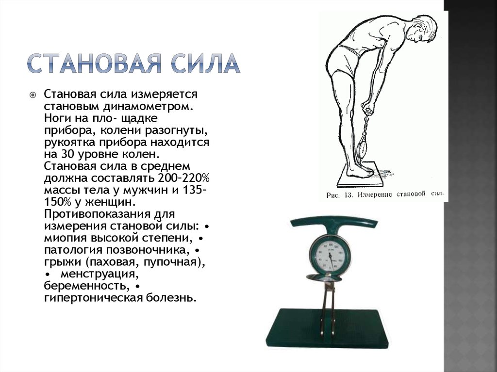 По ссылке если прочитать и попробовать понять, то станет очевидным, что показатель становой силы явно коррелирует с показателем силы в становой тяге. Понятно, что не тождественные понятия, но зависимость прямая. Суть измерены — тянете рукоятку, уперевшись ногами, при этом работают те же мышцы, что и в тяге: разгибатели таза относительно корпуса (в основном ягодичные и разгибатели спины), квадрицепс и бицепс бедра.