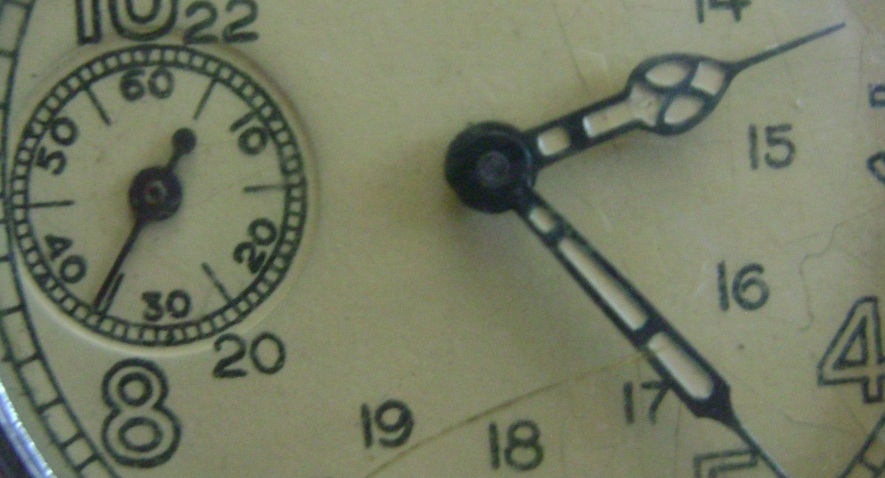 Зачем Вам циферблат образца после 1935 года?!! Вам нужен 1Госчасзавод или Гострест Точмех. Вообще больше похоже, что кто-то вставил американский мотор в более поздний советский корпус. Он ведь не приспособлен для частой разборки для перевода стрелок. Американские корпуса часто были золоченые. Мотор не простой - 21 камень, хронометр железнодорожный! Можно пофантазировать, что родной корпус продали на золото, а на прекрасном механизме собрали часы из доступных деталей. И произошло воскрешение после 1935 года...