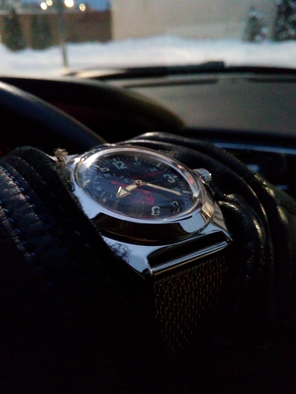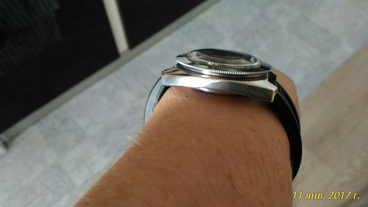 Добавлю фото еще на каучуковом ремешке с застежкой бабочкой. Ремень обрезается точно по руке на Уиссе Нардене дайвере, потом уже не увеличить его.