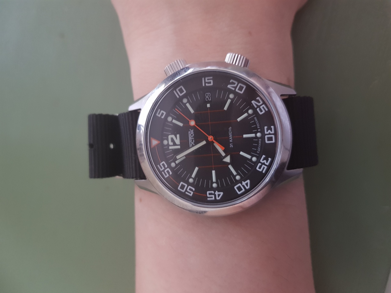 Все мои часы имеют водозащиту от 100 метров, и комрессор с момента его реинкарнации заявлялся как амфибия на 200 метров. Поэтому его и приобрел, а не только внешний вид.
