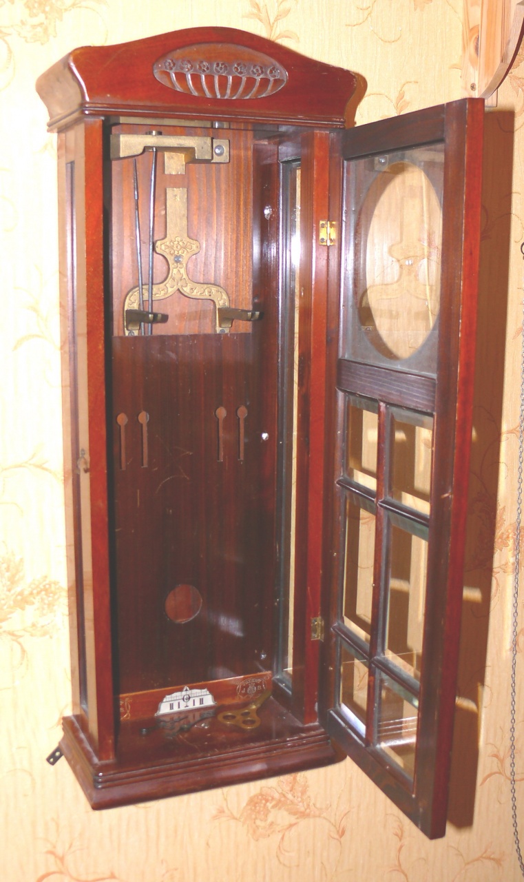 Не могу согласиться с мнением СД о том, что корпус неродной - я не вижу никаких лишних отверстий, все, определенно, на своем месте и выглядит родным. По производителю - практически уверен, что часы австрийские, самого начала 20 века (вероятно, 1910-е гг.). Очень интересная конструкция задней стенки, определенно, призванная улучшать "музыкальность" и увеличивать громкость боя, выполняя роль своеобразного акустического резонатора.
