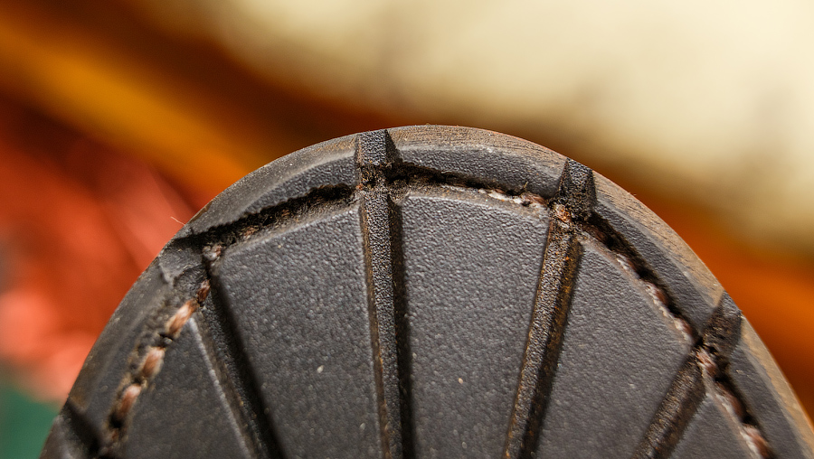 2) Небрежная прострочка подошвы. Как я понимаю, на скорость и надёжность не влияет, но всё же, спрошу, стоит беспокоиться о провале строчки на носке и залить чем-нибудь или нет?