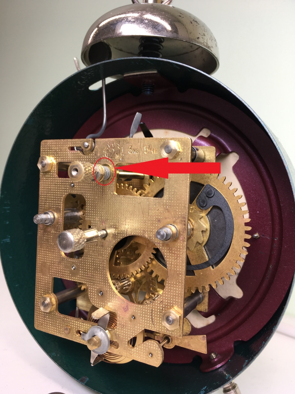 Болтанка часового колеса по оси так и осталась, но работе механизма уже не мешает. Решил пока не заморачиваться со втулочками и шайбочками, и оставил будильник в покое. Кстати, втулку лучше будет установить сразу за платиной, и видно её в любом случае не будет.