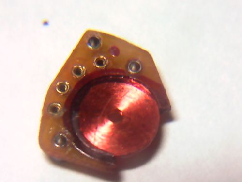 3. Катушка умерла по-видемому насильственной смертью, вверху на ней имеется крупная царапина (возникшая из-за неправилного позиционирования катушки), в добавок один из контактов просто пробуксовывал на месте не давая выкрутится винту... пытался вообшем обрыв провода найти и припаять, замочив катушку (лучше бы я этого не делал, а просто поддел бы с краю провод и припоял бы два вывода к контакту) ... но увы между крайними контактами обрыв цепи, между двумя в середине примерно 1.2 кОм сопротивление. На рабочей катушке между крайними -5.4 кОм, по середине 1.2 кОм... Блин, намотать новую будет не реально, где достать такой тонкий провод, и главное как наматывать (в смысле как позиционируются одна катушка относительно другой)?