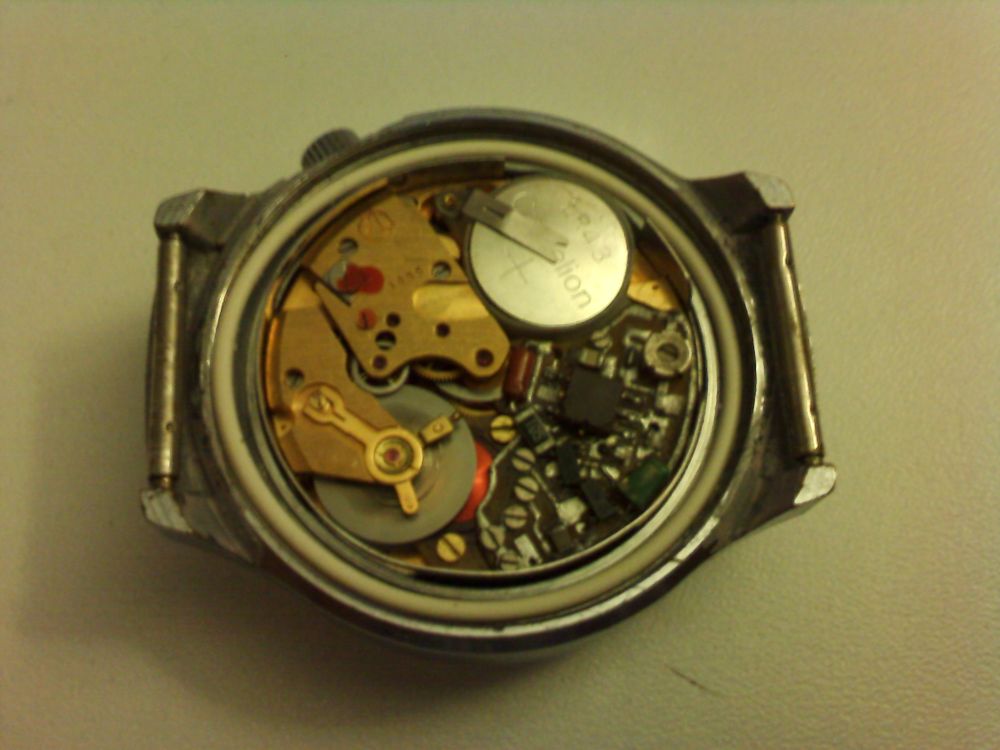 луч. Заодно была заменена практически вся механическая часть. Как оказалось, механика от той розовой тушки была в практически идеальном, не тронутом состоянии. Поскольку старая платина уже мною когда-то лататась, анкерное колесо было повреждено каррозией и ещё кое-что помелочам - вот я и решил использовать полностью мех. часть от розовой тушки, а не менять некоторые детали. Сейчас это выглядет так, как показано на первом фото.