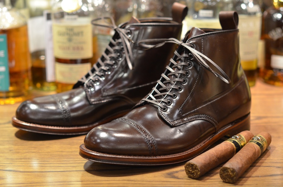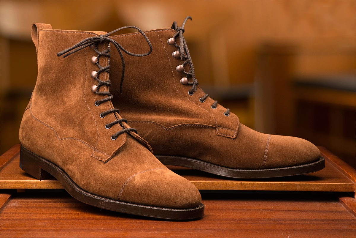 В сторону правильности выбора сомневаюсь относительно остроносости. Фигура достаточно спортивная, хорошее телосложение, не грузная, не расплывшаяся, пропорционально сложенная, обладает динамикой восприятия. На таком фоне, остроносые ботинки добавляют угловатости к и так динамичному восприятию. Поэтому мне кажется, что форма мыса ботинок должна быть поумереннее. Затемненные носы (м.б. от глассажа) в данном случае играют «против», чем «за».
