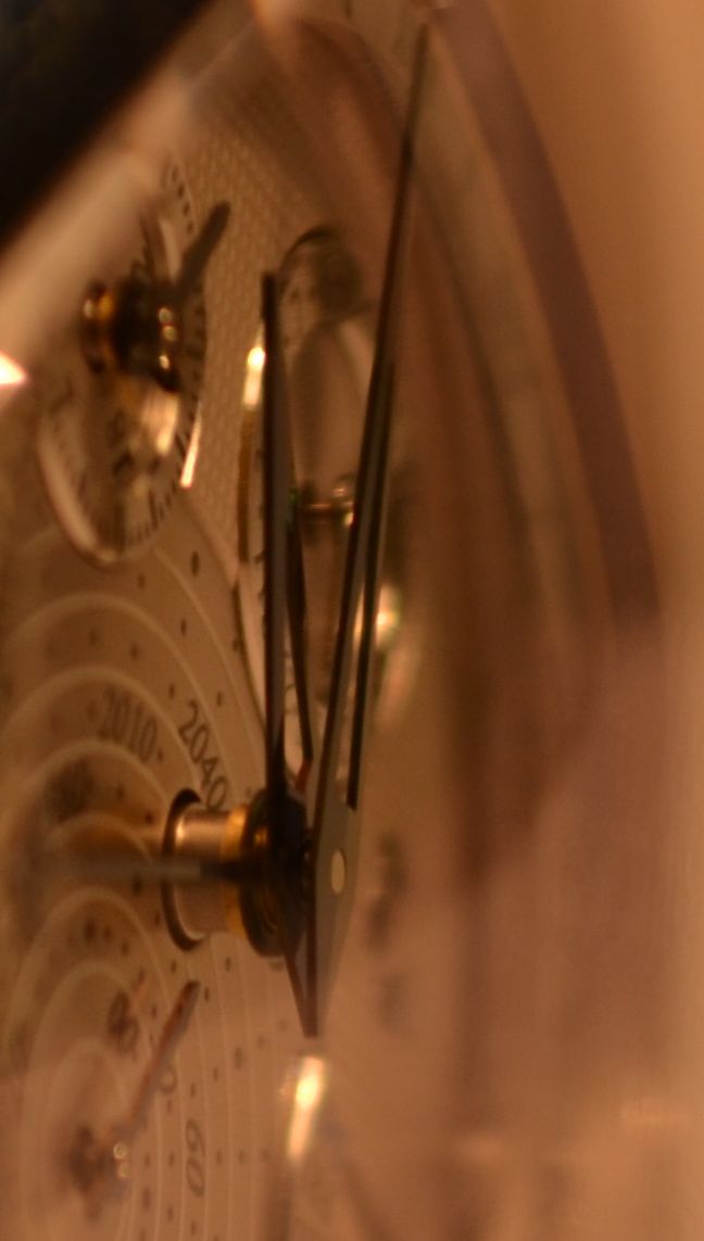 Кстати о секундной. Она не полированая и не обработаная вообще, но по фото создается впечатление, что ее ширина меньше ее высоты. По сравнению с часовой и минутной со снятыми фасками, секундная кажется вырубленой из много более толстого листа металла. По оценке масштаба, секундная стрелка с параметрами 0,12х0,15мм.