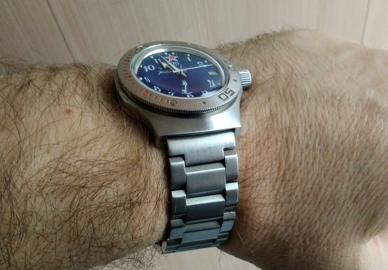 З.Ы.: браслет можно было бы оставить и родной, он тоже частично сатинированный. Но увы, он обладает известным свойством востоковских штамповок - отлично депилирует шерсть