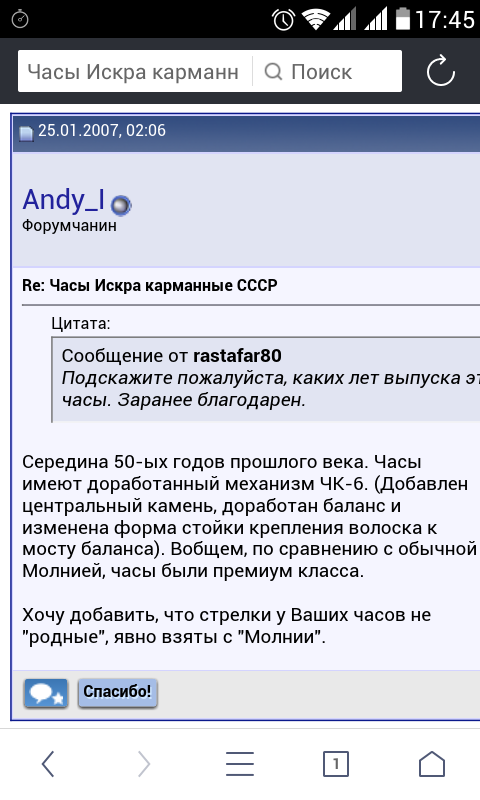 | Карманные часы Молния | Artjom131 | Что за часы? Сколько стоят эти часы? | 6 | 29.05.2017 17:18 |