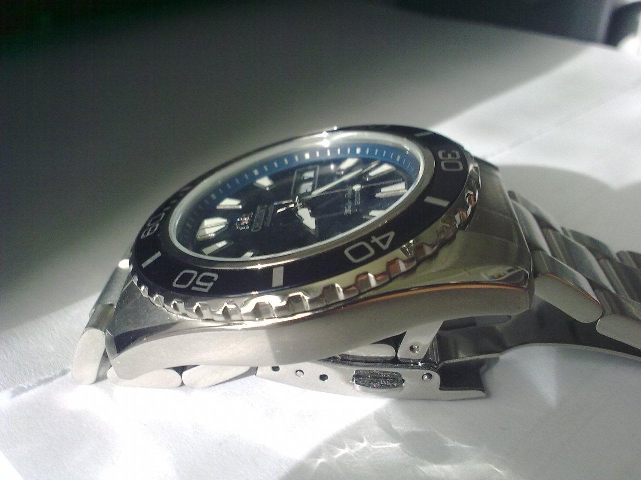 3. Корпус-размер действительно большой! На руку 17-18 см , я думаю, будут великоваты. У меня запястье 21 см, легли идеально. Прекрасное сочетание полированных и матовых поверхностей. Со временем полированные бока покроются потертостями, но это не отразится на внешнем виде часов-верх матовый.Эргономика на высоком уровне-ничто не цепляется.