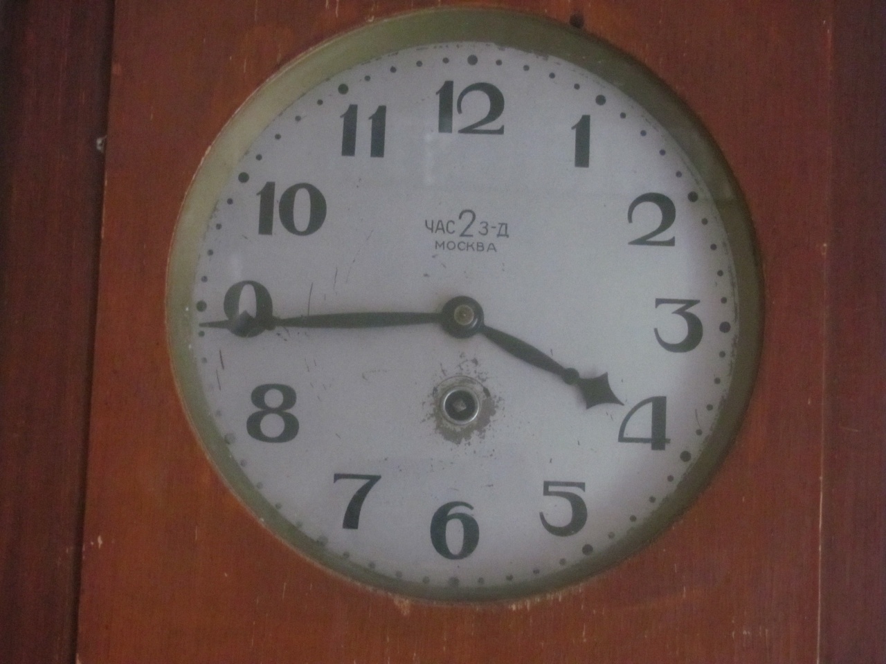 Тогда я попытался их запустить - не пошли. Обнаружил сильнейшее биение анкерного колеса. Попытался выправить гнутые цапфы - сломал. Сделал самодельную, хз из чего. Механизм промыл, собрал и убрал часы, не запуская. Некуда тогда было их вешать. 20 лет они просто и тихо висели в мастерской на даче... Купив новоузенский дом, я их сюда забрал. Смазал и запустил, но пошли плохо - то же биение, хотя и меньше. Чуть "обточил" анкерное колесо надфилем, отрегулировал ход - пошли без замечаний. И сейчас ходят, так как я в Новоузенске на "самоизоляции", туды её в качель… С корпусом, кстати, ничего пока не делал. Ключа не было - подобрал обычный от ОЧЗ. Извиняюсь, никак не могу 1-е фото повернуть...