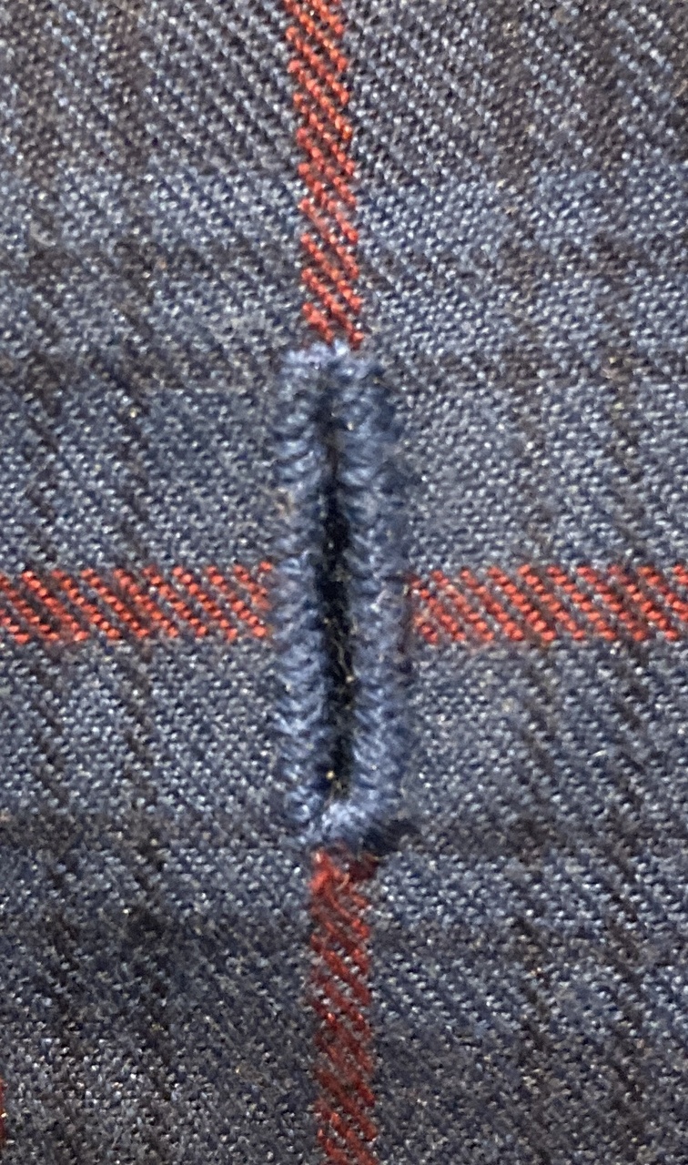Нина, для образования. Вот что такое петля и ее ручная обработка (в данном случае петля очень маленькая, не больше 1 см, и не на толстой ткани пальто, а на достаточно тонкой и мягкой ткани Holland & Sherry):