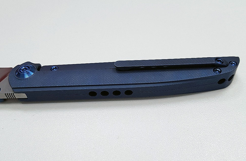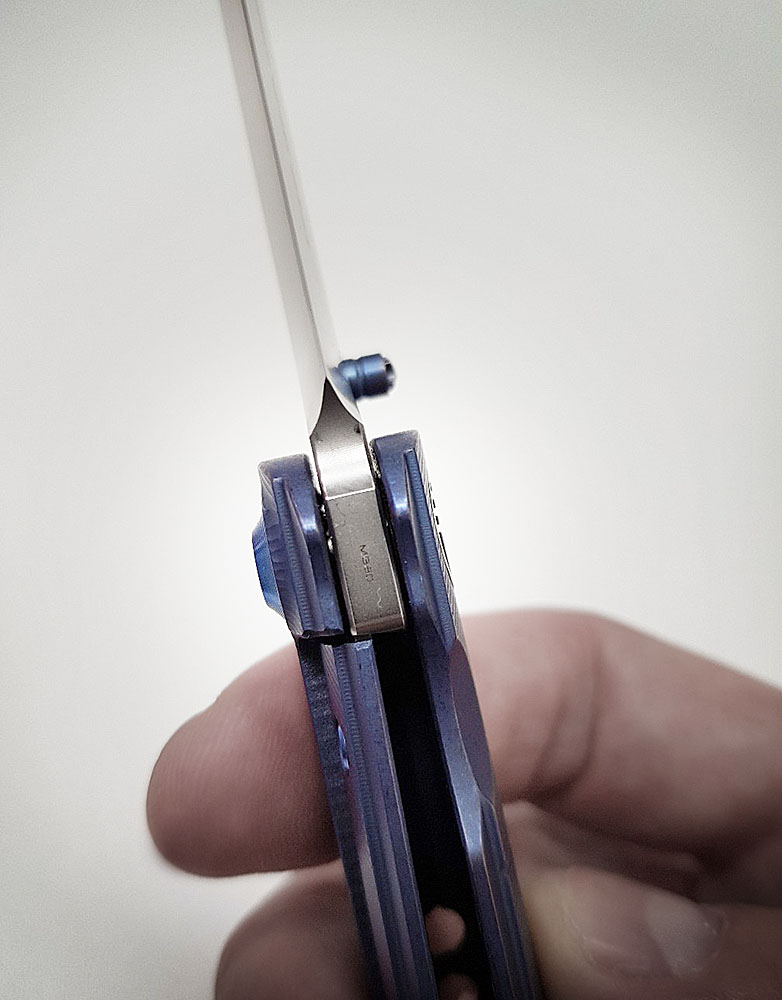 Из-за этого сбивалась центровка положения лезвия в пазе рукояти. Не критично для работы, но не эстетично! Зато дешево, надежно и практично, типа. Тут же, в 618 рукоять целиком из титана и сделана прекрасно, не весит ничего, но как я ни старался, не гнется и клинок строго по центру. Плюсы 618 еще и в отсутствии гнутых деталей в принципе, даже защелка на карман фрезерованная из титана, керамические подшипники в оси. Изделие будто из другой ценовой категории, хотя на прилавке разница меж ними не то 40 долларов.