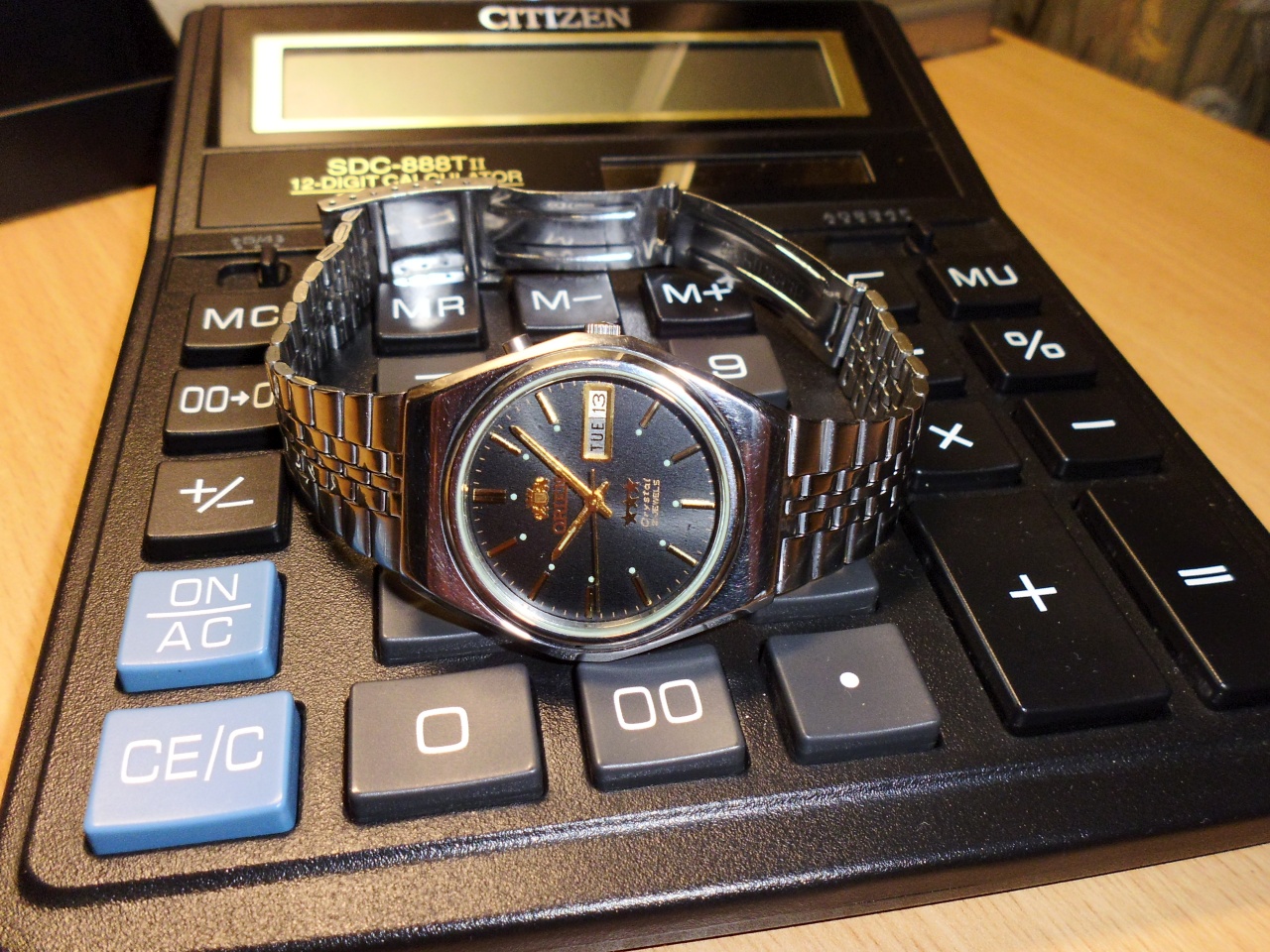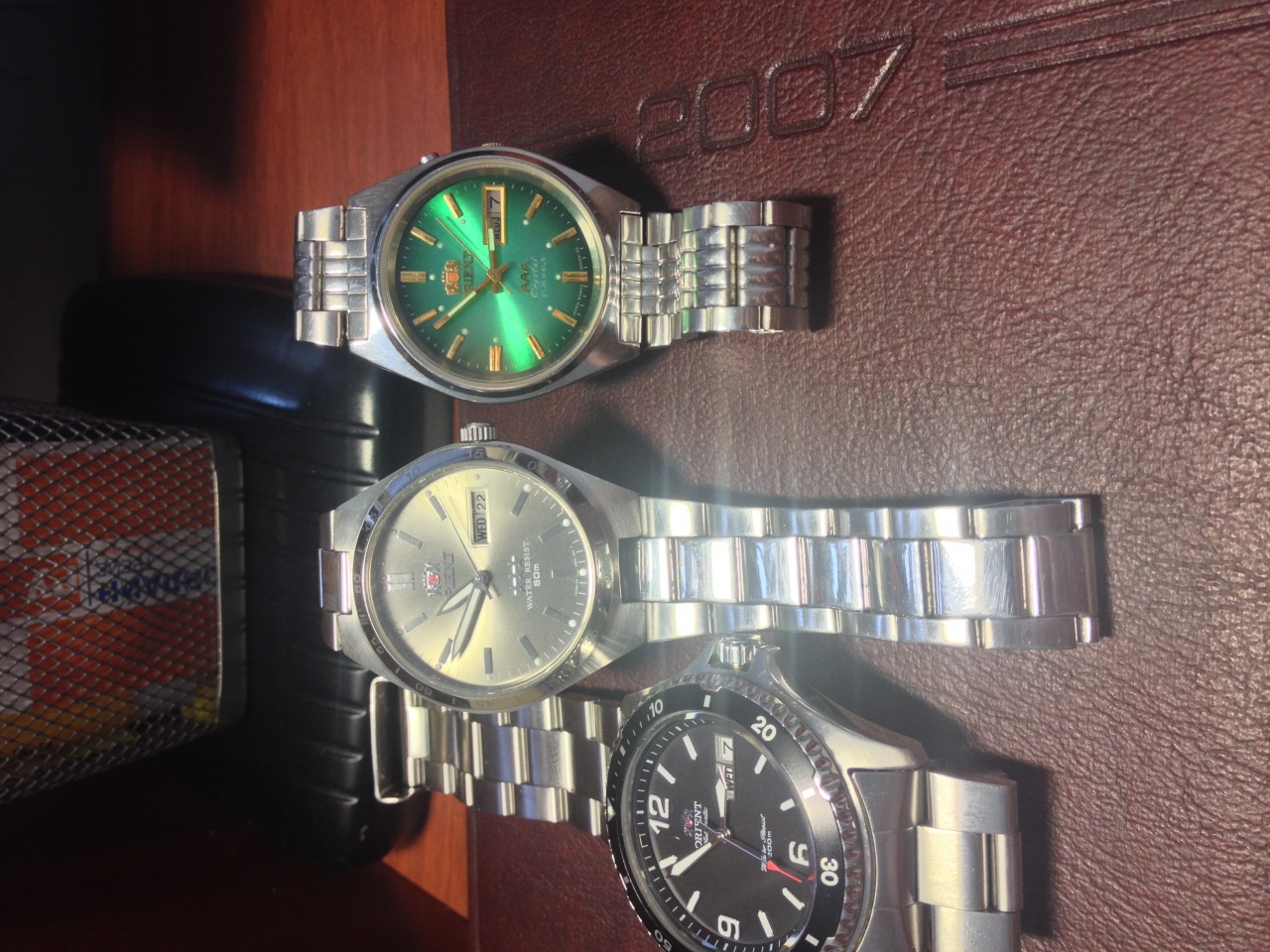 С тем покупателем моего первого Orient судьба свела меня спустя 12 лет после сделки. Мы побеседовали обо всем на свете, а в конце заговорили про часы. Оказалось, что он их носил все это время, пока они не остановились после того, как он поработал ломом не снимая часы. За энную сумму он отдал мне их обратно. Вернулся ко мне мой первый Orient. Положил я их в шкатулку. Но потом подумал, что нужно их оживить. Ожили они, даже немного преобразились, получив календарь на русском языке (про эту идею пост мой был здесь ранее). Буду ли я их