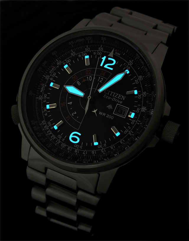 Функции: 12/24-часовой формат времени, двойное время , вращающаяся авиационная линейка на оправке