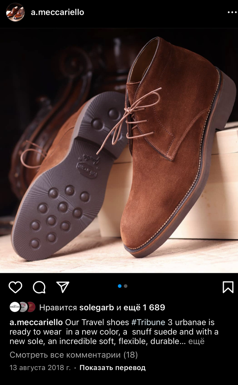 обувь и постит в обувных луках, искренне полагая, что это что-то приличное? Ничего не перепутал? К слову, о дезертах, как говорится, приличных. Meccariello 295 евро .