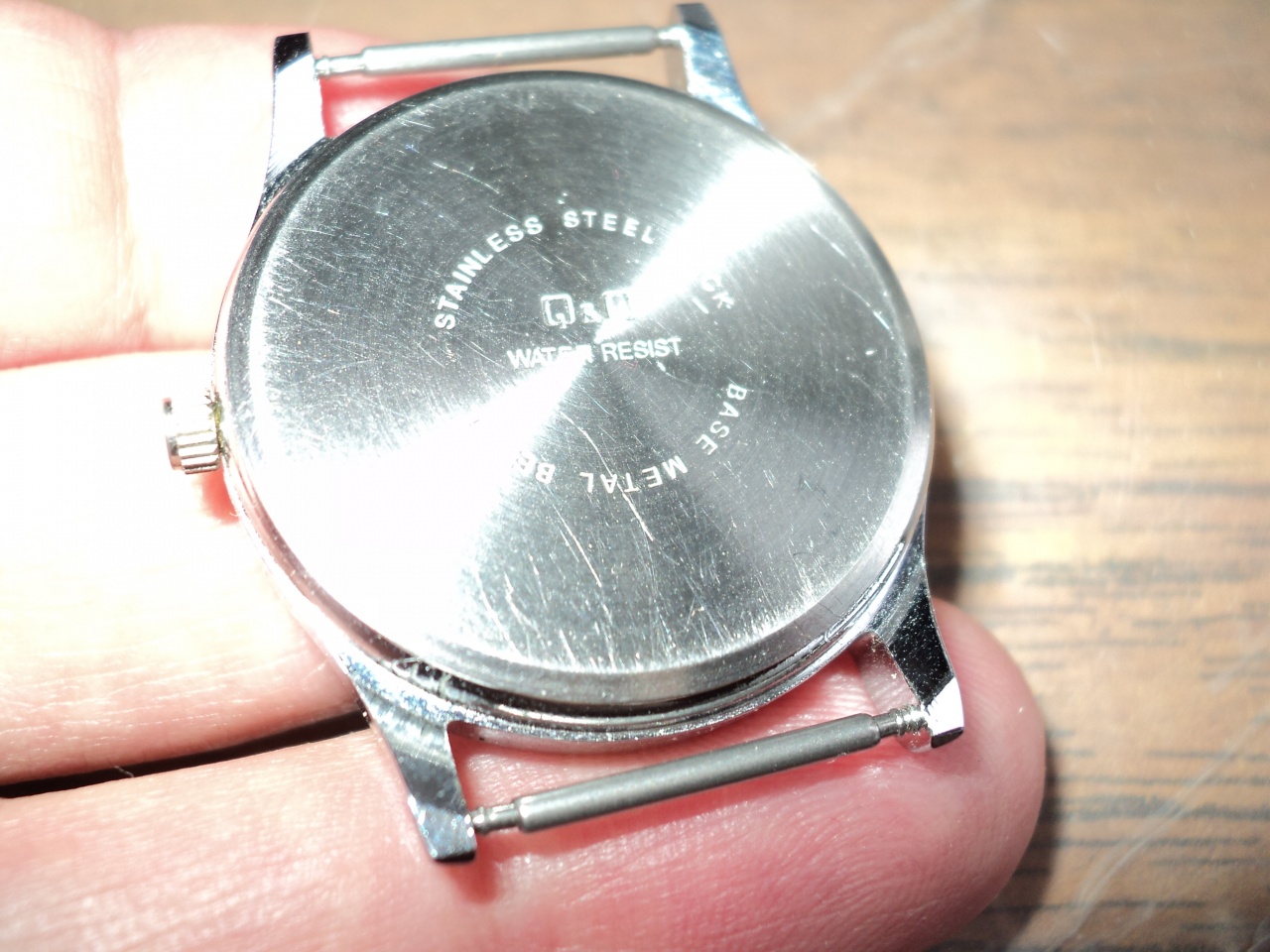 Вот такой вид приобретают Q&Q которым больше пяти лет. Фото со вспышкой и без. Полностью в царапинах , но никаких намёков на сколы и облазанье хрома на корпусе. Напомню, мы говорим о латунных корпусах часов, с браслетами там всё по другому. Все браслеты из сплавов кроме нержавейки начинают облазить буквально уже через пару-тройку месяцев.