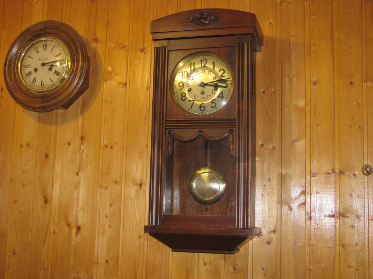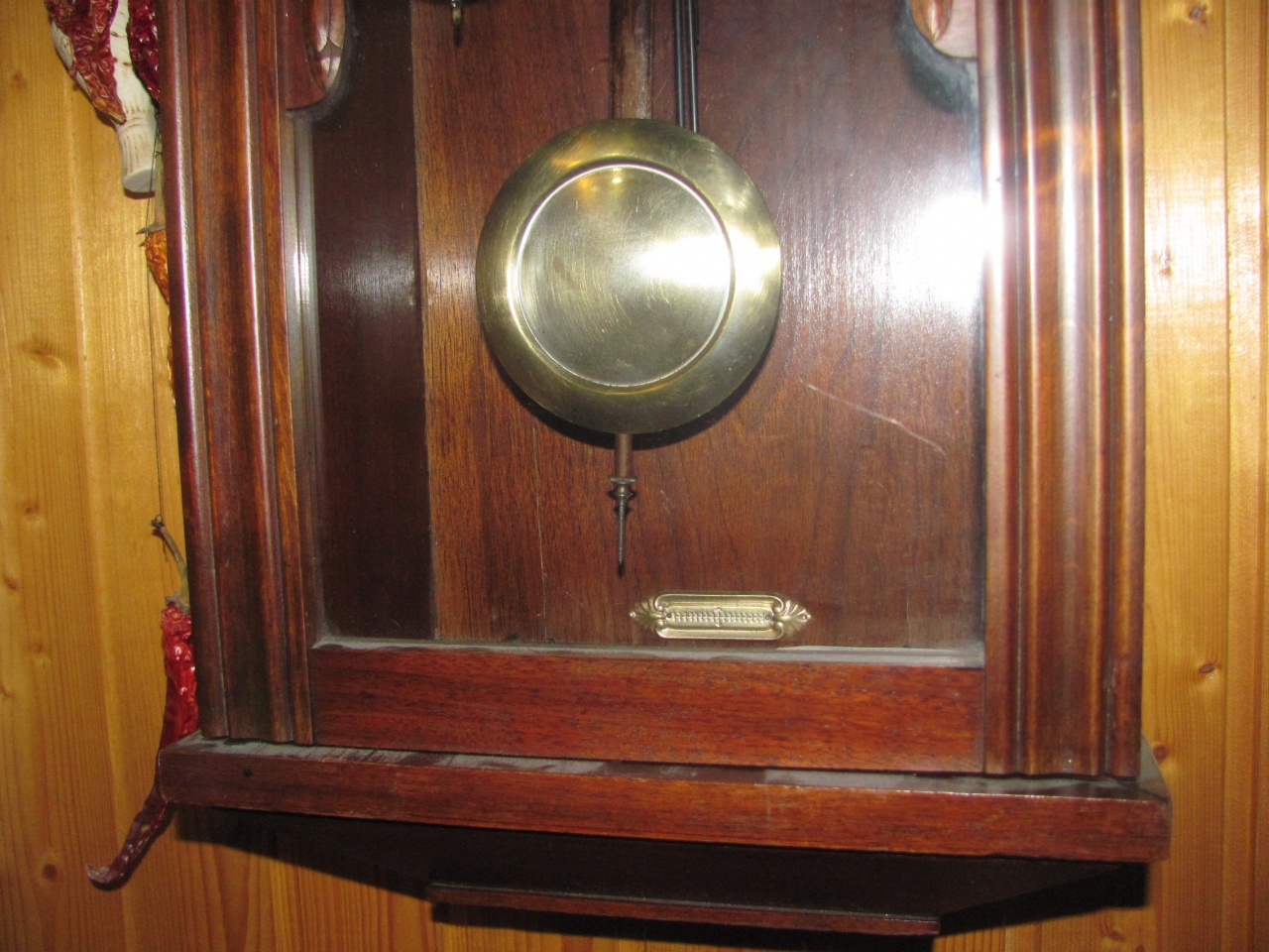 После двух дней работы часы пошли и забили более-менее нормально. Но сильно отставали, резьбы на стержне маятника не хватало, пришлось подобрать подходящую втулку под гайку, длиной миллиметров 15 (до меня там в качестве втулки стояла гайка от каких-то других часов, но и её длины не хватало). Допускаю, что маятник «неродной».