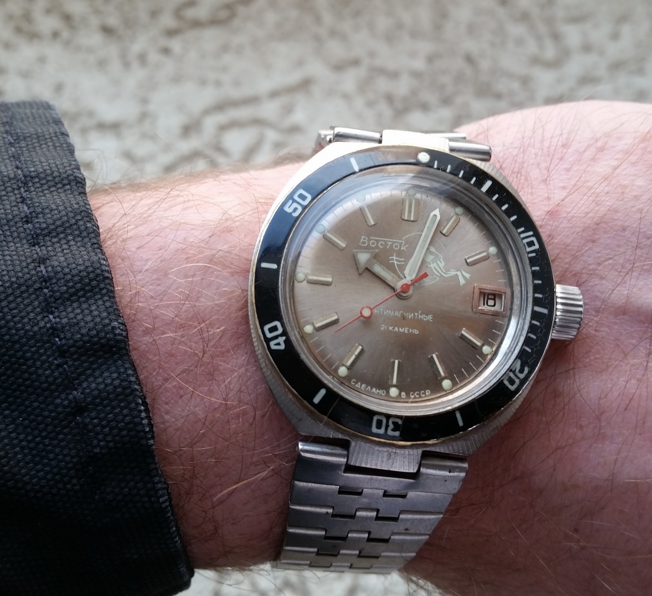 Вот такой аквалангист. Внутри- все родное. Цвет цифера интересный. Подскажите, кто знает- мне кажется, этот цвет- от выгорания, только из какого?