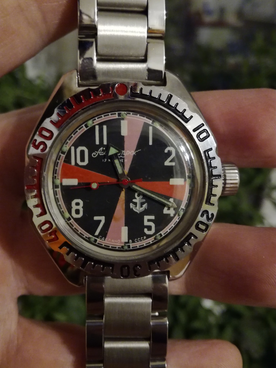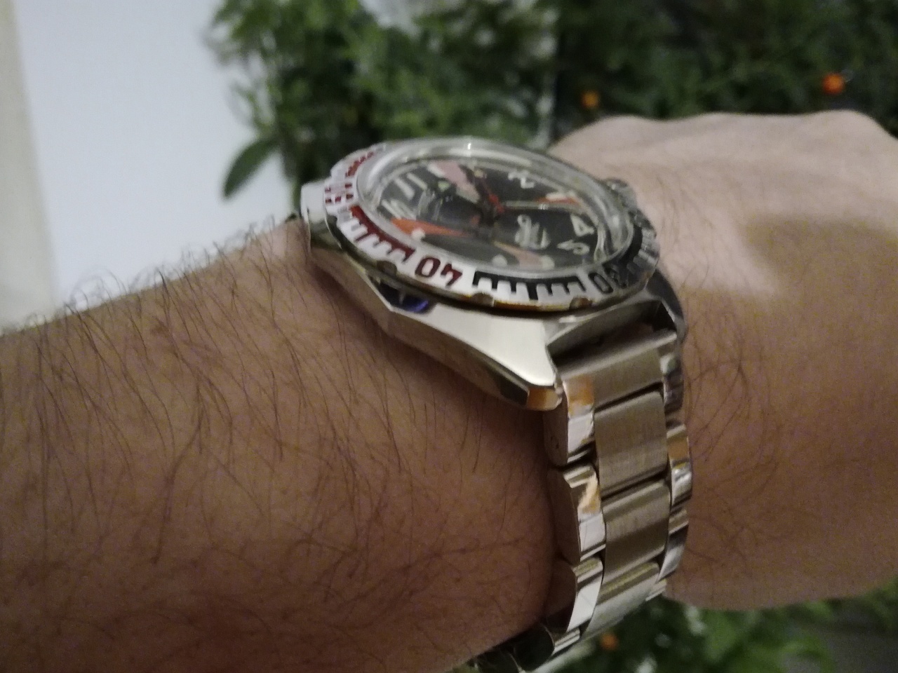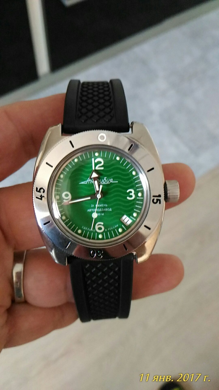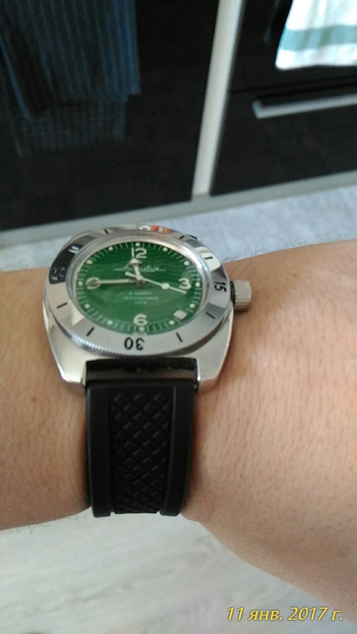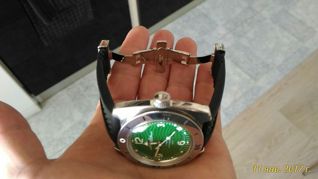 Добавлю фото еще на каучуковом ремешке с застежкой бабочкой. Ремень обрезается точно по руке на Уиссе Нардене дайвере, потом уже не увеличить его.