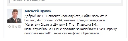 Судя по сообщению (часы были проданы на Юноне, это рынок в Питере), может, купил кто-то из наших питерских форумчан?