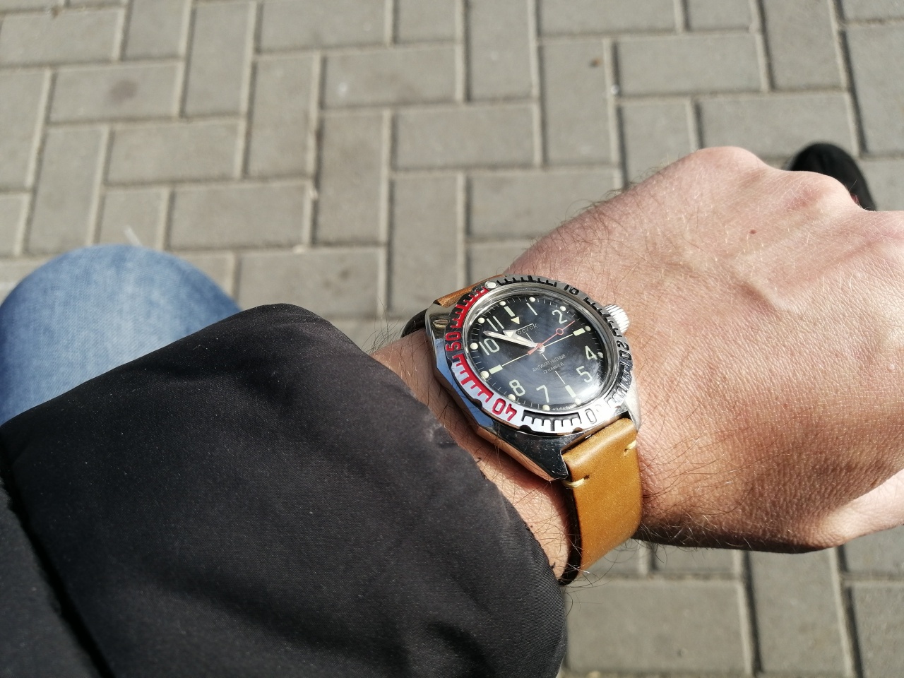 Корус 350-й, остальное - Амфибия SE 710557S. Ну а ремень тут теперь гланое - https://www.etsy.com , militarywatchstrap . Обалденная вещь!