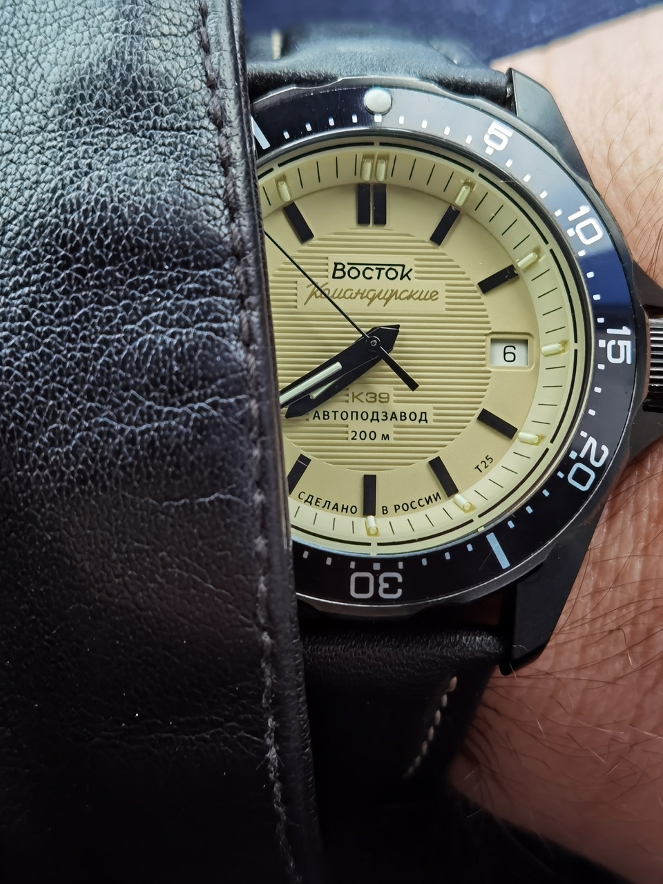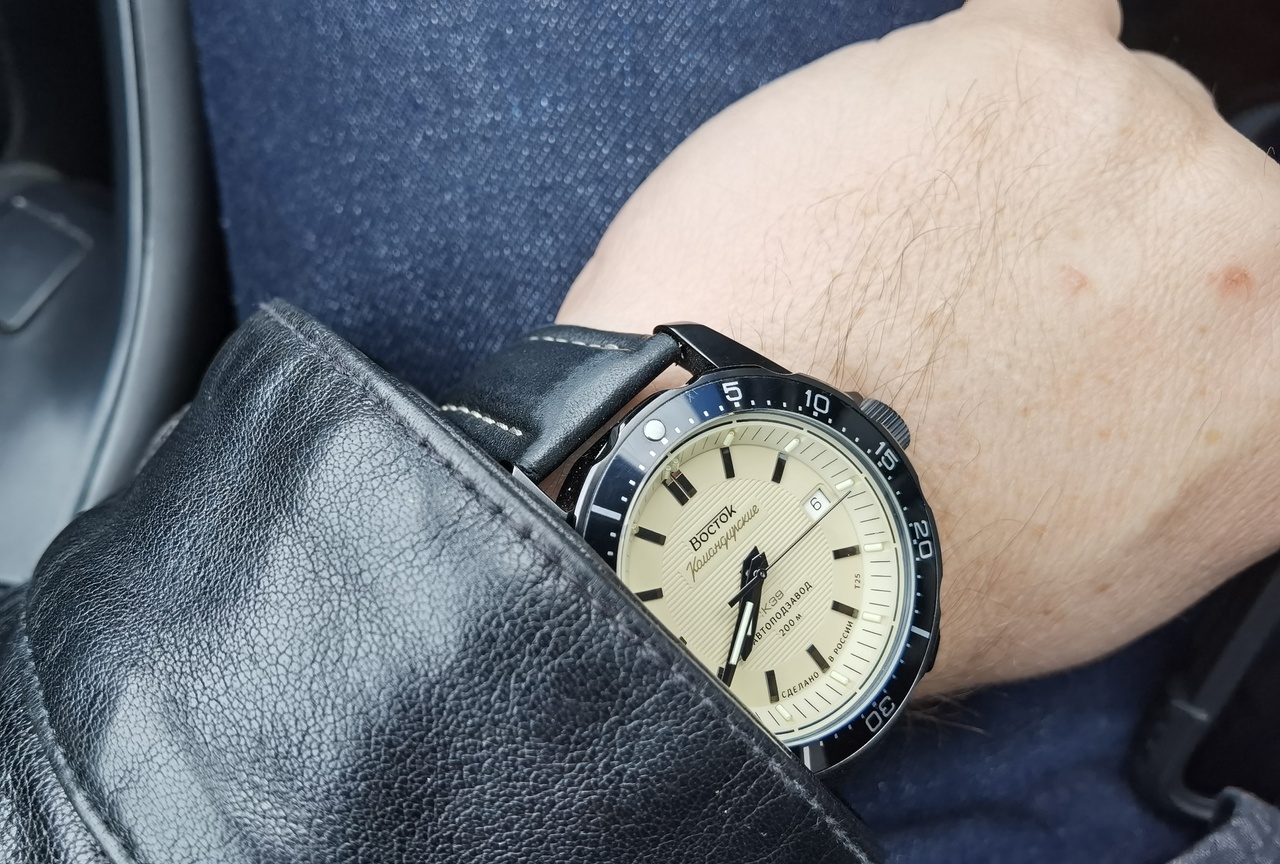 Сменил коричневый стоковый ремешок на такой же, но чёрный. Теперь неналюбуюсь.