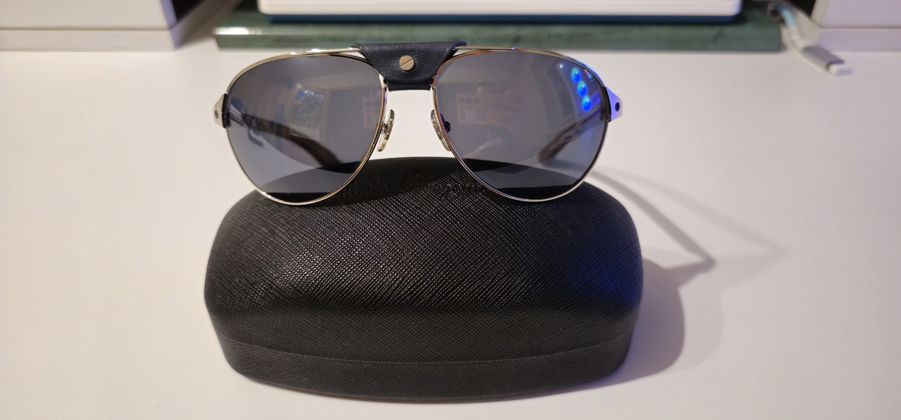 ; открытые винты - отсылка к часам Cartier Santos; вариация линзы авиатор тоже перекликается с историей создания часов Santos, были сделаны для пилота и друга Луи Картье, Альберто Сантоса - Дюмона; деревянные дужки - один из отличительных знаков Cartier, как и роговые; флексы; съемная кожаная переносица; зеленая линза с поляризацией + достаточно облегающая форма = подходят для ярких дней, в том числе для местности с возможными бликами. Из минусов: пластиковые упоры; дужка бьет в нижний край линзы, писал об этом в посте выше; от времени начал отходить слой поляризации, когда это начнет попадать в поле зрения, буду менять линзы на Zeiss AdaptiveSun.