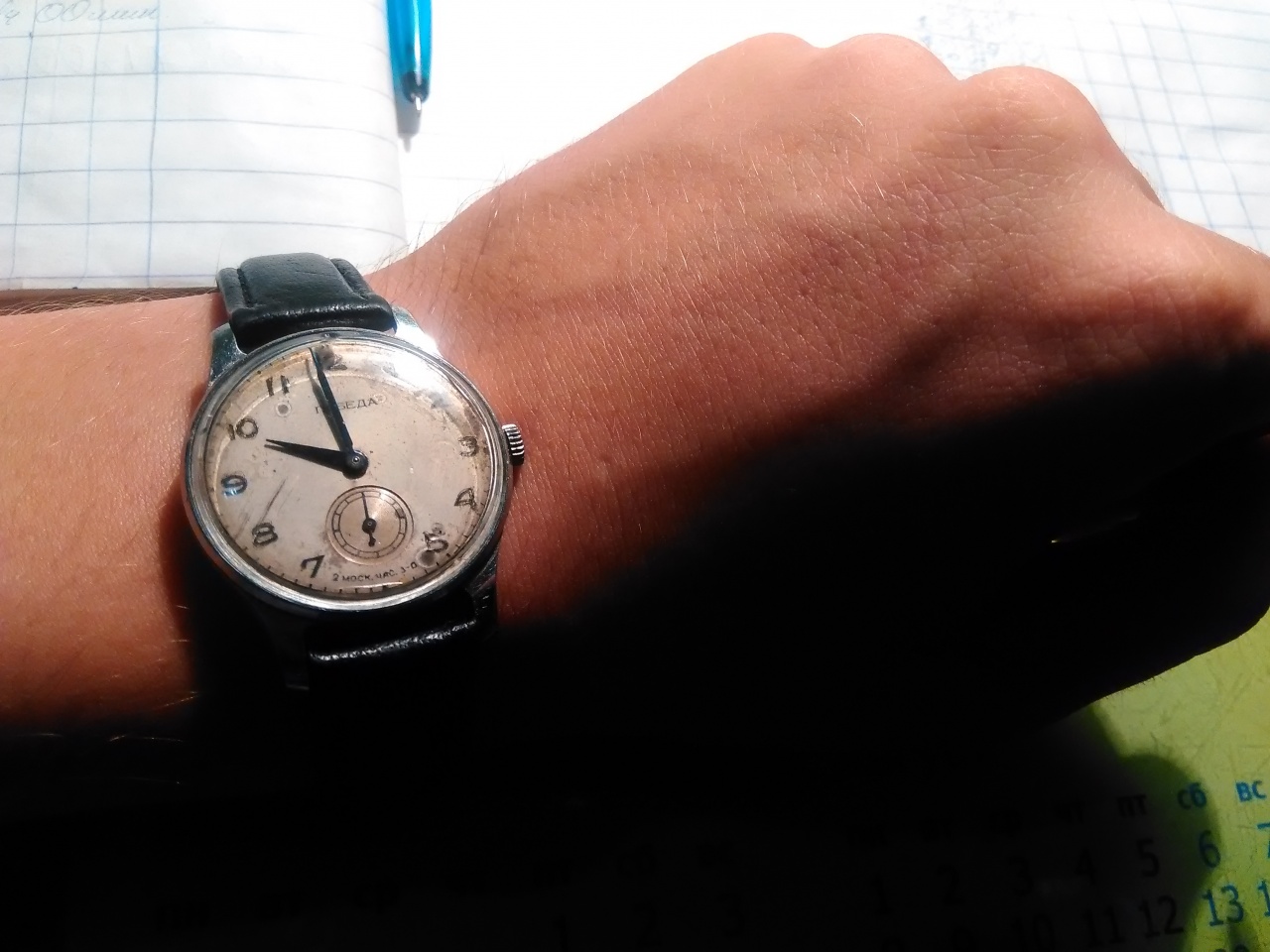 Вы молодец ! Реакцию одногрупников пусть завидуют Я сам свою "Победу" люблю , мои первые часы с чего все началось. До сих пор выгуливаю )Когда узнают что они старше меня на 35 лет то округляются глаза , учитавая тот факт что мне 26 лет Собтвенно вот и они "Победа-2моск час з-а" , 4-55 , часики справили юбилей 65 годиков Так что носите и удивляйте людей P\S ищу на них цифер... пока безрезультатно