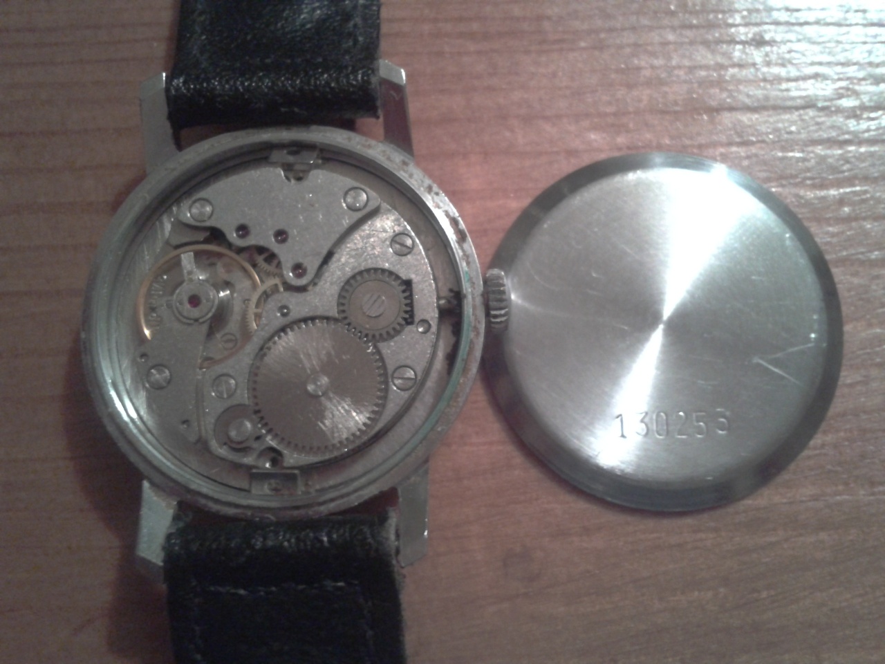 Механизм довольно пожилой (еще баланс непротивоударный) 50-х годов, циферблат и корпус гораздо моложе, из 90-х. Таких котлет было много сделано в 90-х годах.