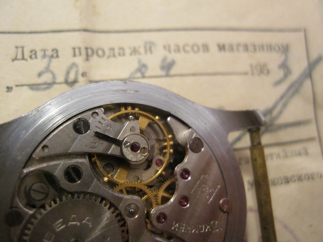 Касаемо моих экземпляров, то одни часы пришли из Питера с молотка (были в куче нерабочих часов, как современных типа Командирских, так и старых советских), другие же купил здесь при распродаже остатков часовой мастерской. В обоих случаях я не знал, что скрывается внутри корпуса, обнаружил только дома.
