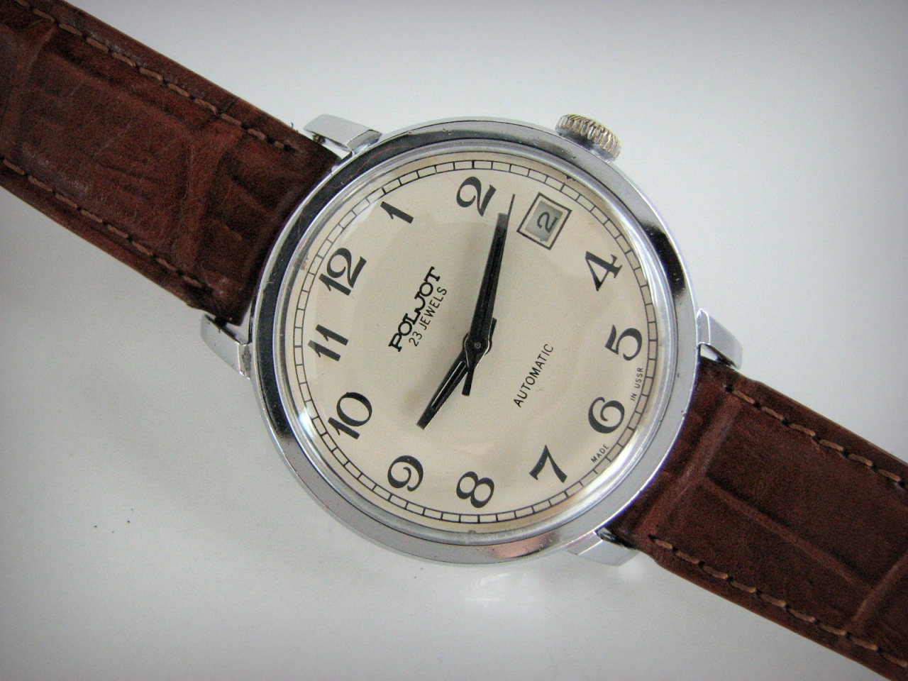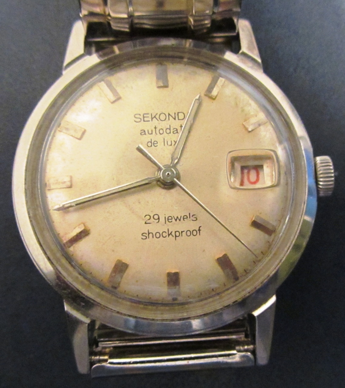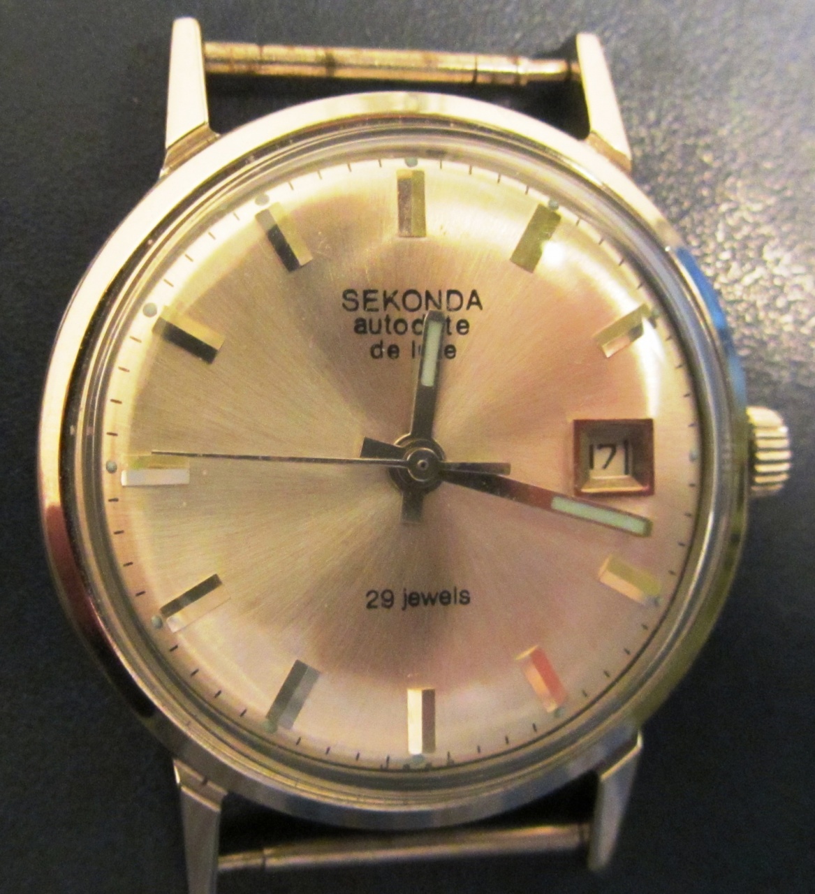3. Луч НЕЛЬЗЯ поставить, потому что ЛУЧЕЙ В НЕРЖАВЕЙКЕ ОТРОДЯСЬ НЕ БЫЛО! Вымпел тоже нельзя, потому что Вымпел был другой- маленький, да и корпус этот поздноват для него. А Полет МОЖНО, потому что все комплектующие для этого соответствует друг другу (размеры цифера и корпуса, позолоченные цвета стрелок и индексов для РУССКИХ НЕРЖ. Полетов, периоды выпуска цифера и корпуса- середина 1960-х гг., наличие таких же белых латинских аналогов- Poljot и Sekonda). Вот такие у меня по-настоящему весомые и неоспоримые 4 аргумента в пользу моего Полета.