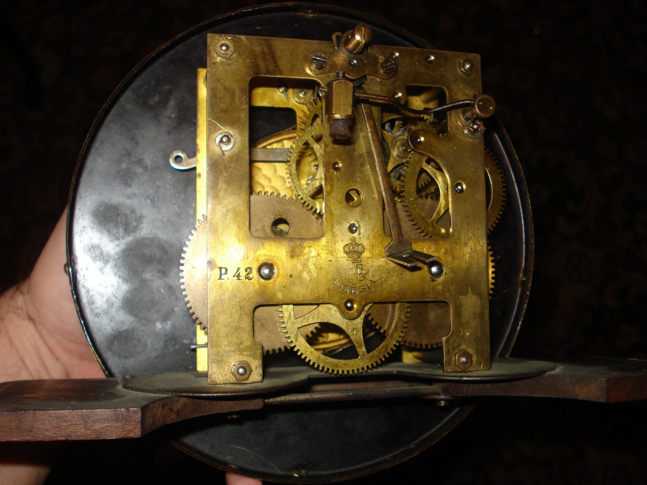 Отличные часы, фабричная модель Gustav Becker, жаль только утеряно навершие. Пытался найти рисунок этой модели в имеющихся у меня каталогах 1910-24 годов, но безуспешно. Подскажите, в механизме трибы наборные (цевочные) или фрезерованные? Это даст возможность более точно оценить дату выпуска.