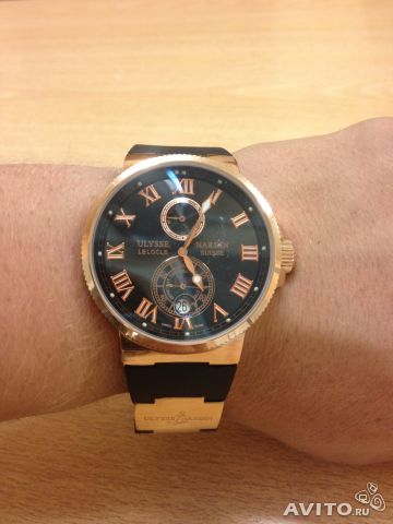 Очередная китайская подделка Ulysse Nardin Maxi Marine Chronometer Ref. 266-67-3/42 за $65-70 с криво приклеенным ротором из фольги, надписью Chronograph на крышке и знаменитым номером 7161 на боковушке. Некий Дима хочет получить за это изделие из "восьмикратного розового золота" ажно 340 тысяч деревянных и готов к любым проверкам за счет ушастого лоха-покупателя! На что расчет - совершенно непонятно...