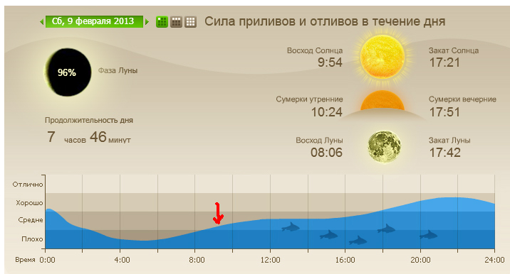 Вот пример, где я без особого труда определил часы и минуты лунного интервала приливов для моего города Кишинев на 06.02.2013.